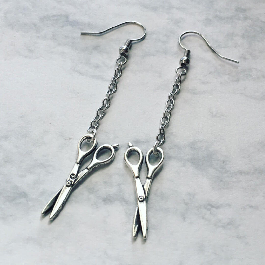 lil scissor earrings. about 2 inches long.