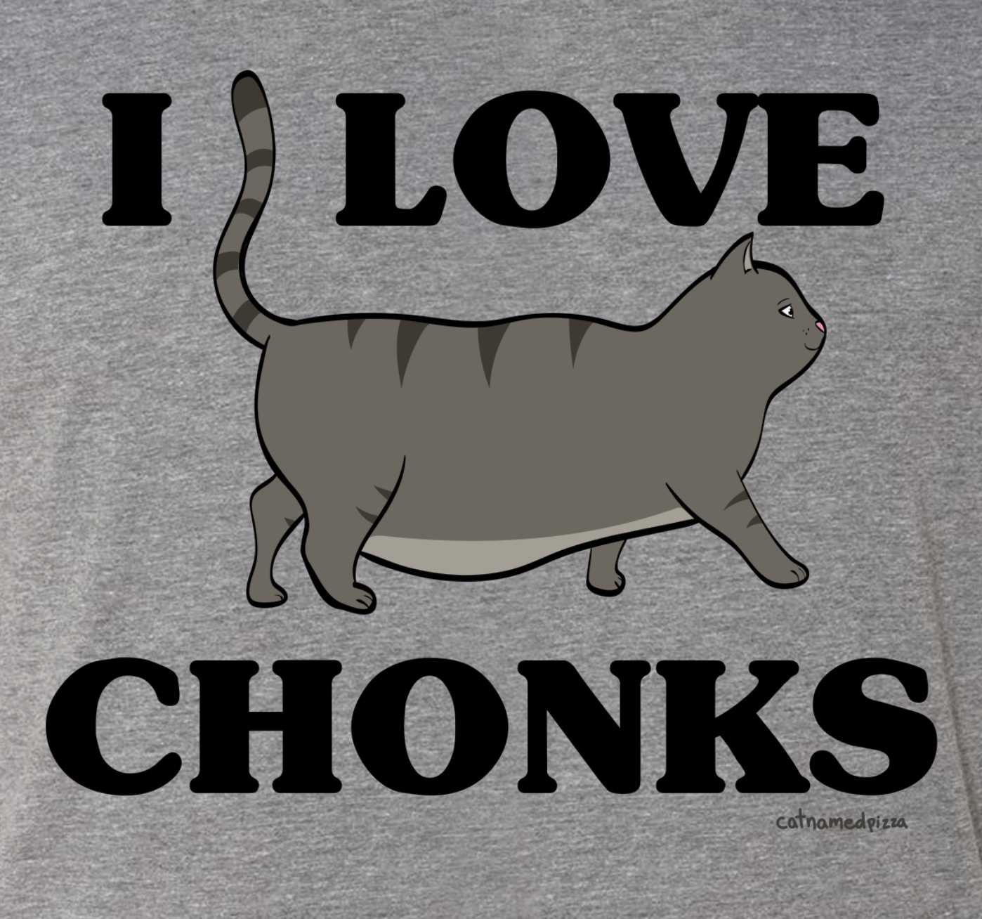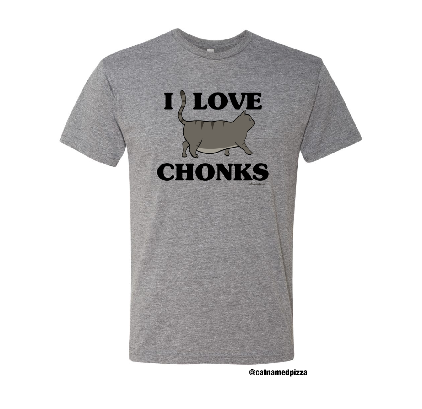 Show the world your love for #CHONKS with this crewneck style cotton t-shirt. Submit photos of you wearing your Chonks t-shirt for a chance to be featured on Instagram! @chonksdoingthings @catnamedpiza @the_pizzacat