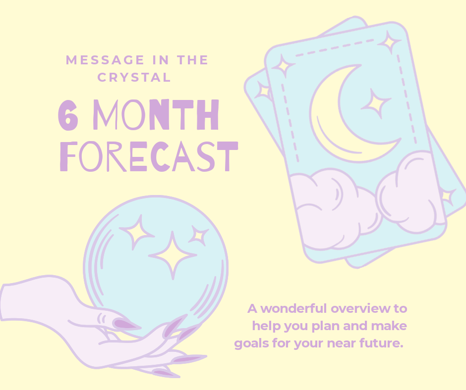 This 6 card tarot reading gives you insight into the energies guiding you each month. A wonderful overview to help you plan and make goals for your near future.