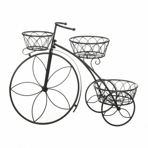 This charming bicycle plant stand is perfect to show off your favorite potted plants. Its European design will enhance your home, deck or patio. Weight 5.4 pounds. 29.5" x 11" x 22". Iron. UPC Number: 849179040369.