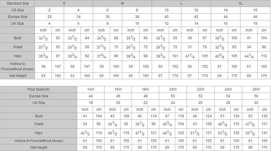 If you are not sure what's your correct size, I highly suggest you choose free custom size(bust, waist, hips and your height). I offer this service for free. Be careful, pls provide correct size, if you don't know how to measure, you can get someone professional to help you!