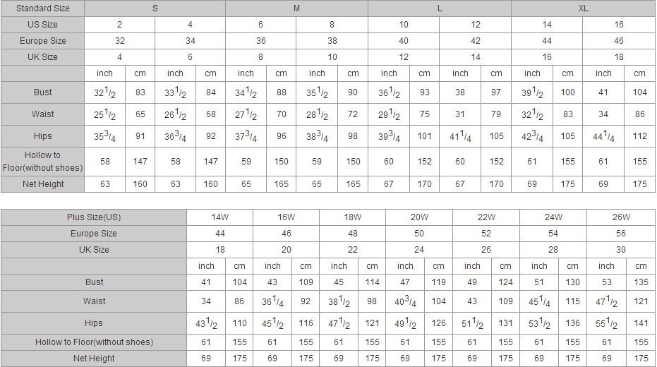 Note: 1. Besides the picture color, you can refer to our color swatch to choose any color you want. 2. Besides stand size 2-18, we still offer free custom size, which requires next size. Bust:___ inch/cm Waist:___ inch/cm Hips:___ inch/cm Hollow to Hem___inch/cm (for short dress) ; Hollow to Floor___inch/cm (for long dress) Height:___ inch/cm You can email me your specific size, before or after your order. 3. Normally our dress processing time is about 10 days and the shipping time about 8~15 days. If you need it urgently, please contact me to check out whether we can rush the order for you.