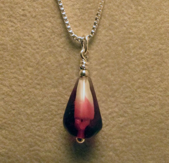 Sweet and simple. Single pomegranate seed on a chain. One hand-sculpted solid glass bead on a sterling silver venetian box chain. Choose a 16 inch or 18 inch chain.