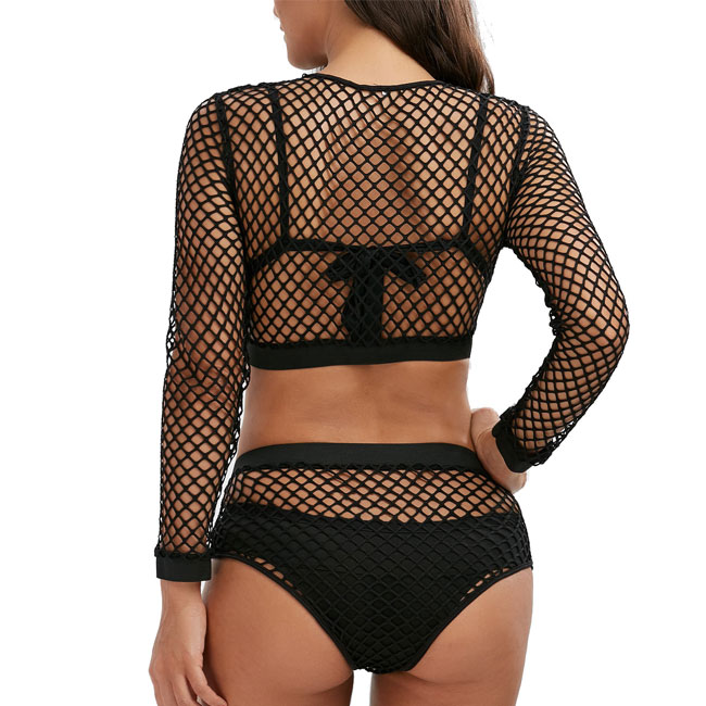 Sexy Sleeve Mesh Perspective Fish Net Round neck Long Women Lingerie-3