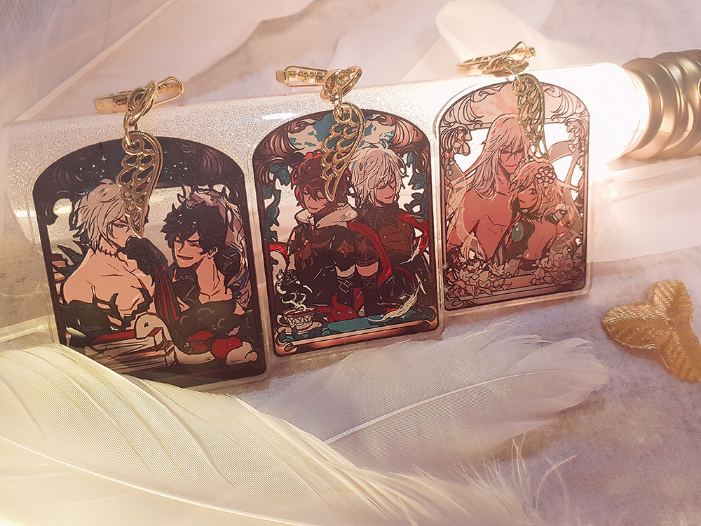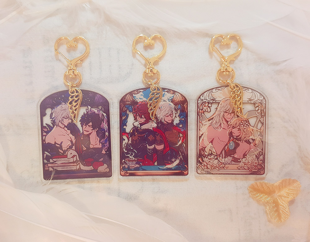 Granblue Fantasy charm designs decorated with wings motif by Miyukiko. clear acrylic double sided charms, main acrylic charms is roughly 2.5" - Tracking is not included in the shipping -