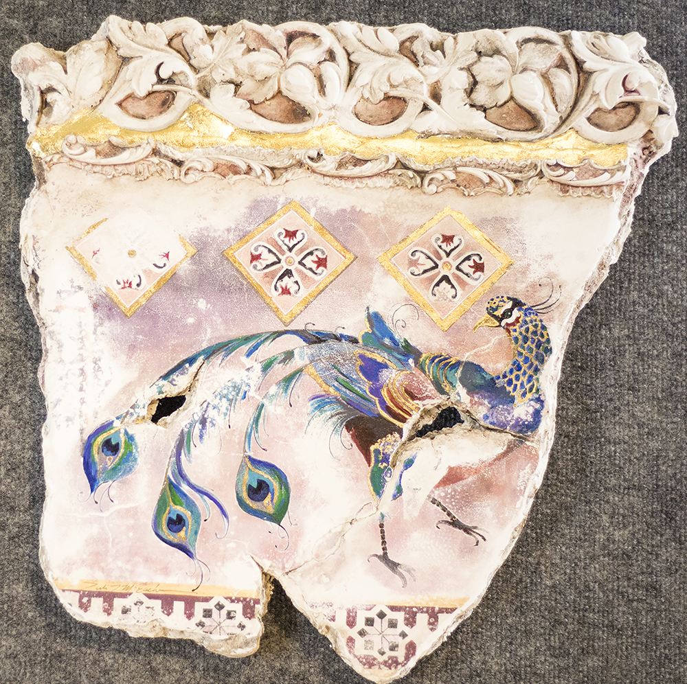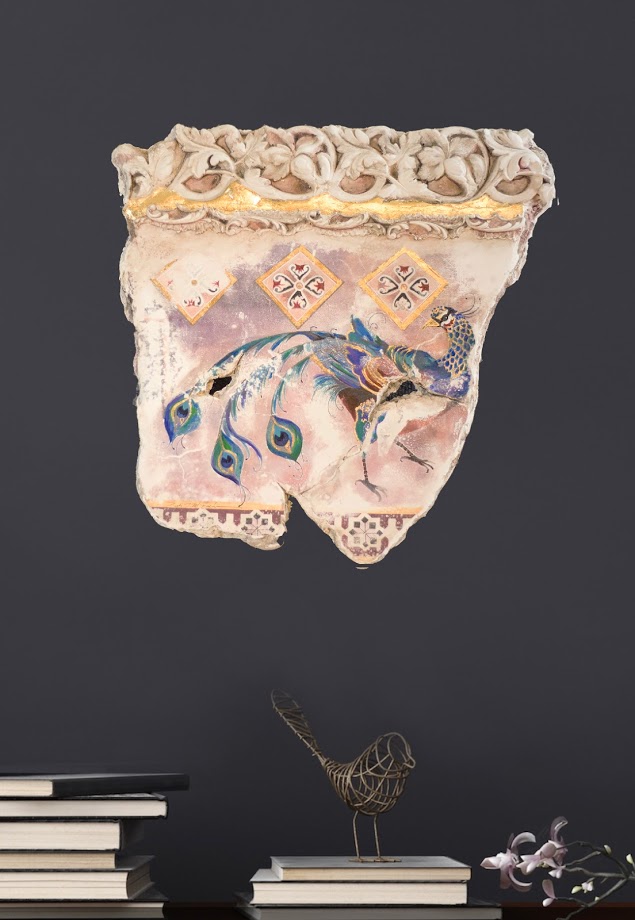 "Peacock In Plaster" is an original one of a kind artwork. Peacock symbolism: Vision, Royalty, Spirituality, Awakening, Guidance, Protection, & Watchfulness. In Greco-Roman mythology, the Peacock tail has the "eyes" of the stars. In Hinduism, the Peacock is associated with Lakshmi who represents patience, kindness, and luck. To see a peacock is a positive sign for the future that brings luck and happiness. a lovely gift or a treasured family heirloom this timeless original art is sure to be enjoyed for many years.