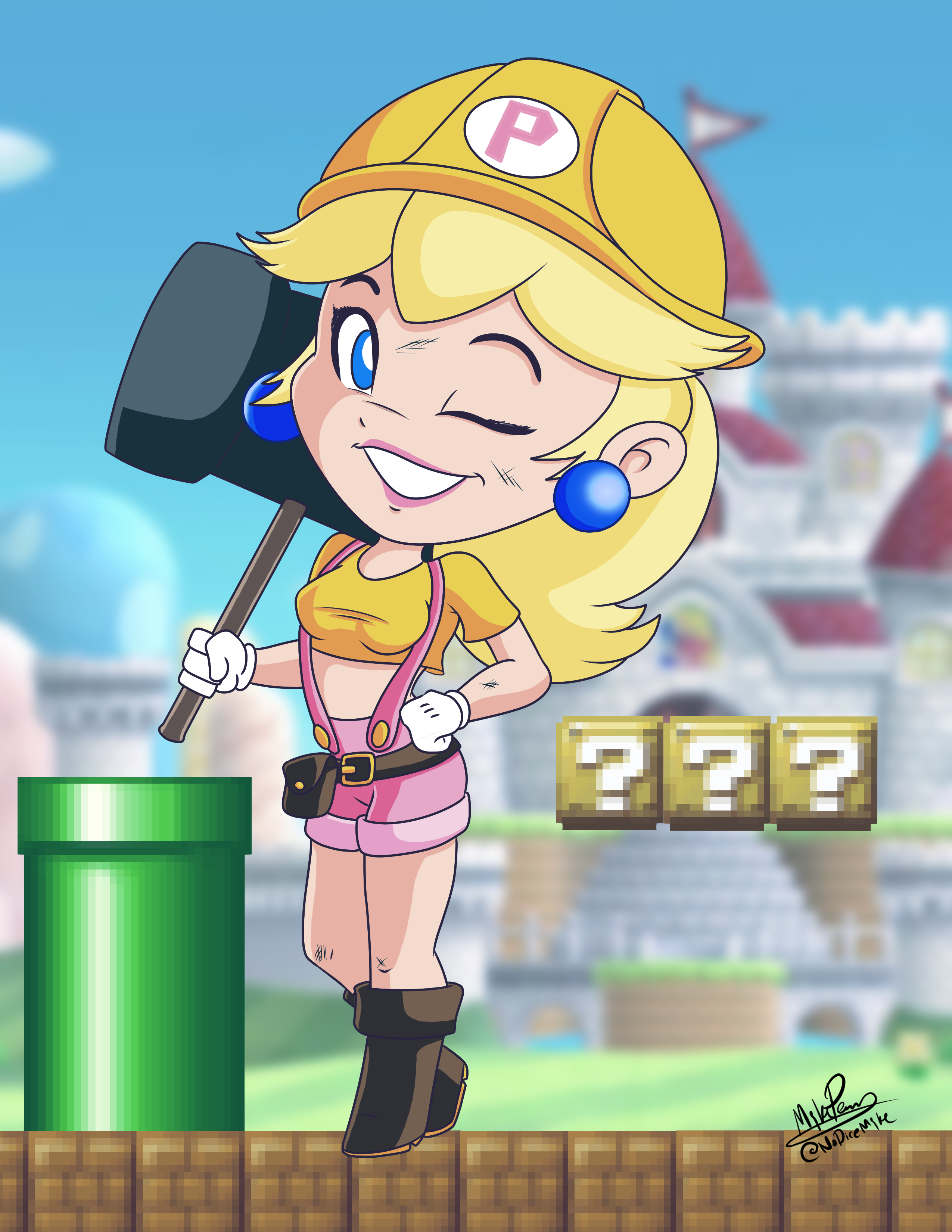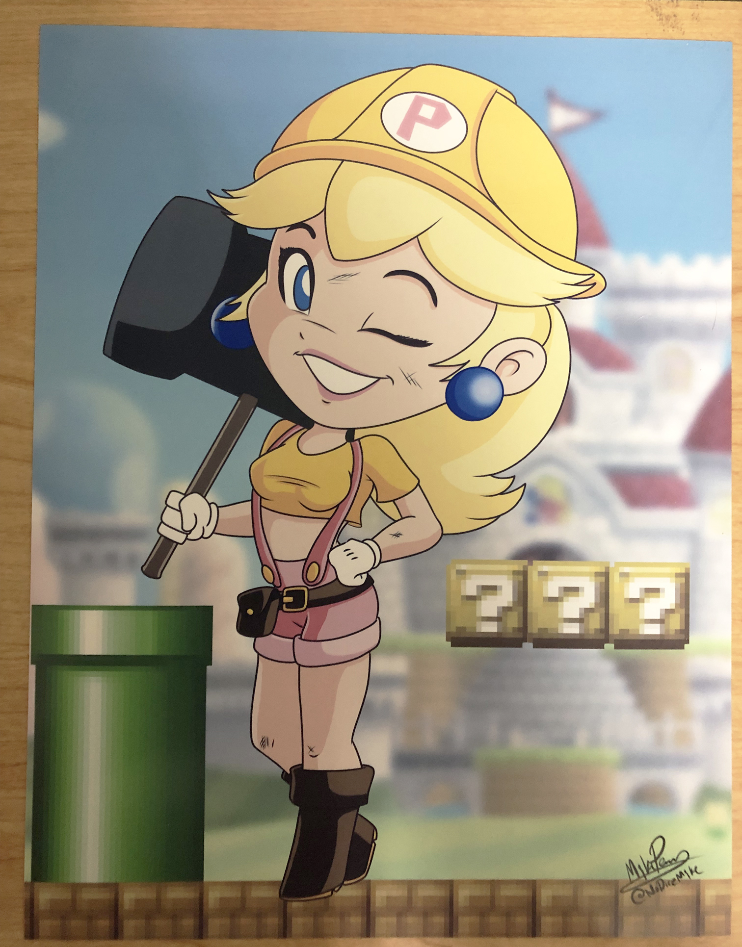 No construction site is complete without cheesecake pinups of girls in construction gear! And Mario Maker is no exception! Now your construction site can be complete with this 8.5" x 11" print of Princess Peach!