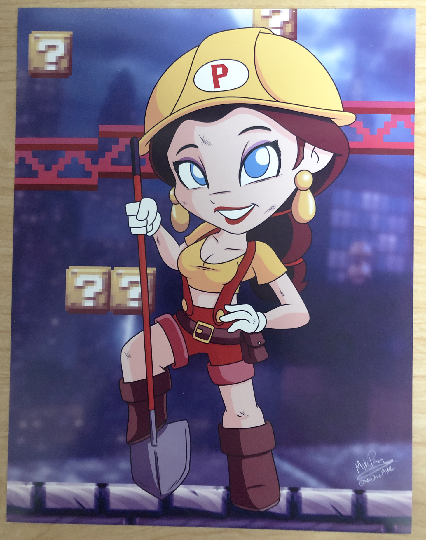 No construction site is complete without cheesecake pinups of girls in construction gear! And Mario Maker is no exception! Now your construction site can be complete with this 8.5" x 11" print of Pauline!