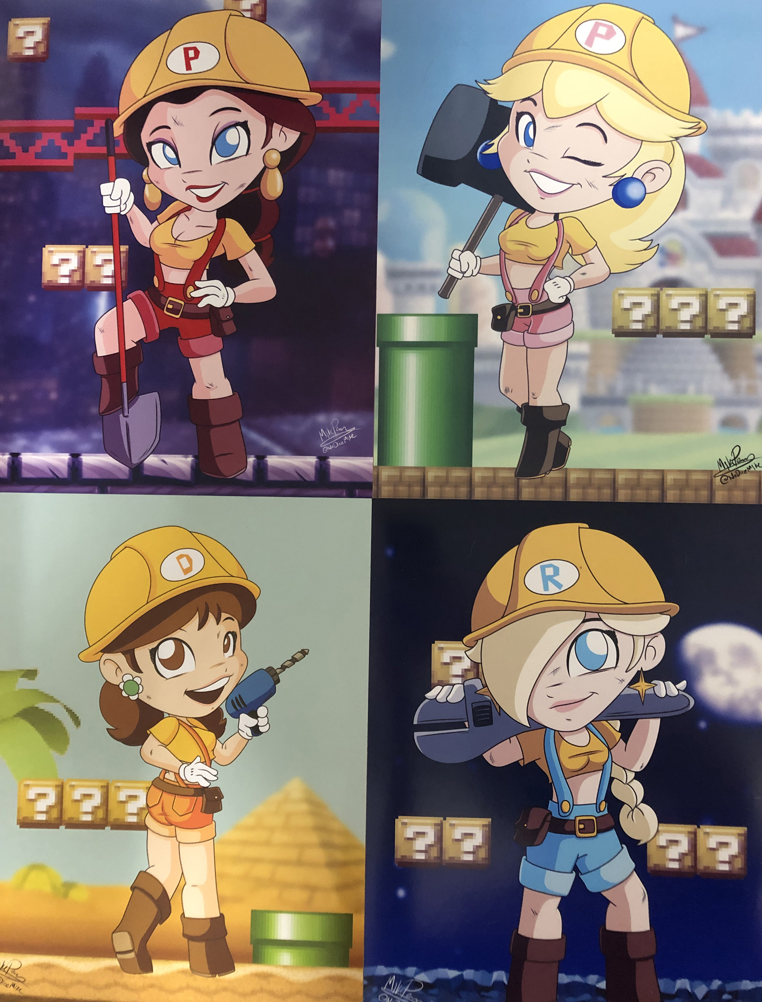 No construction site is complete without cheesecake pinups of girls in construction gear! And Mario Maker is no exception! Now your construction site can be complete with these 8.5" x 11" print of Princess Peach, Princess Daisy, Pauline and Rosalina for $10 less than buying each individually!