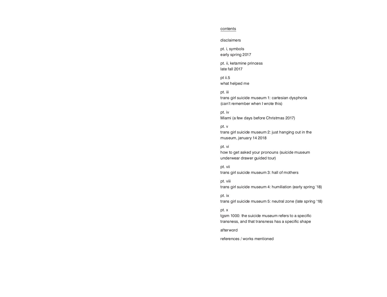 drawing its source material from chance encounters—wordless interactions in basements or bathrooms or hotel rooms—to archives of 20th century critical theory, sleepover secrets exchanged between old friends, rhetorical barbs deployed in the classrooms of elite universities, arguments on the phone with your parents across timezones, the nonverbal codes of high and low fashion, and scribbled notes on the backs of receipts for medicines you don’t know how they work, tgsm is a morbid yet strangely hopeful meditation on the possibilities and meanings of gender variation in our time.