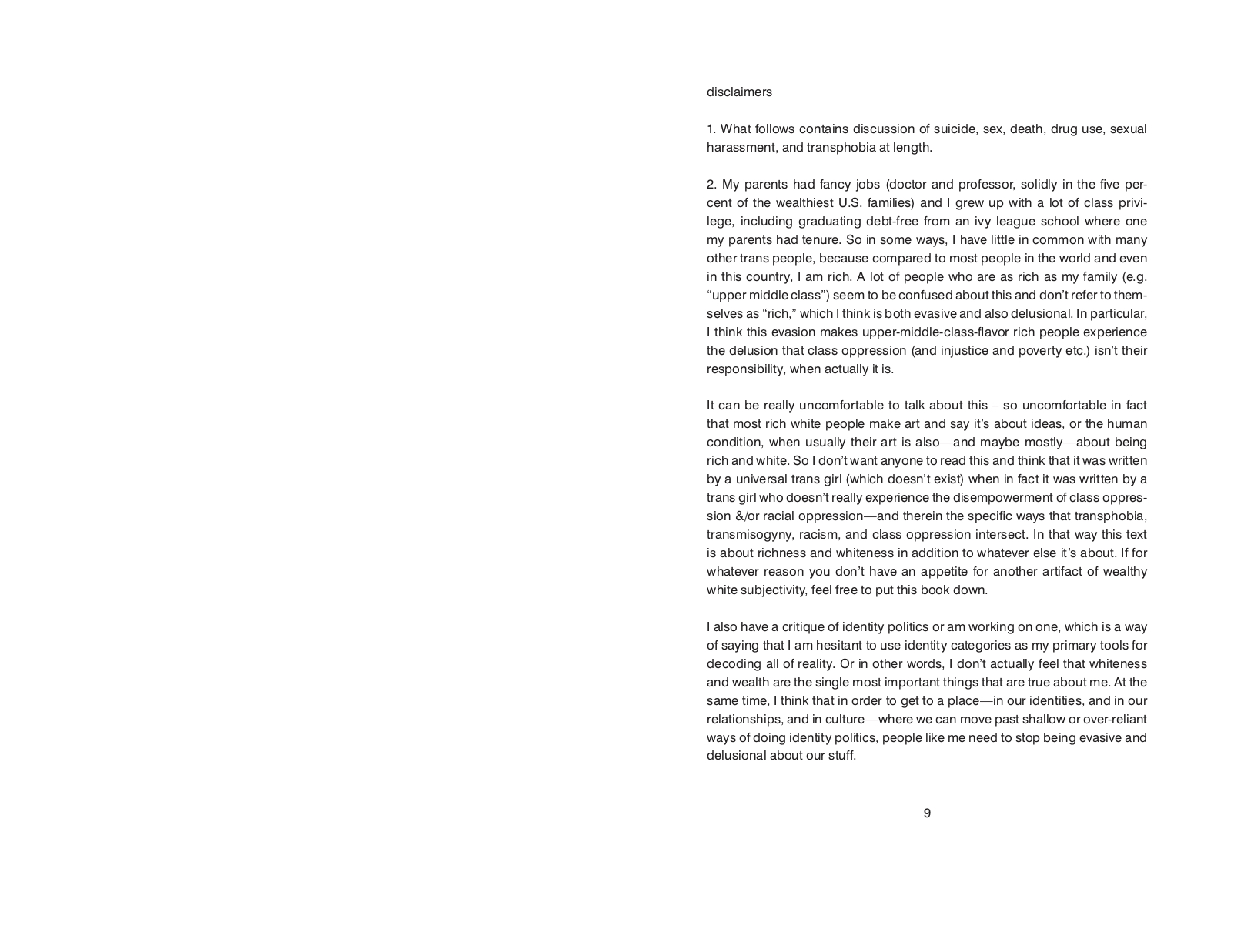 tgsm raises questions with which we have begun to negotiate broadly as a culture: what is actually happening to someone when they transition? how should we understand or describe such processes? what is the role of drugs, of hallucination, of imagination, in transition? is being a trans person in this moment in history—when the identity is ever more carefully traced [and tracked] by larger cultural forces—more liberated than before?