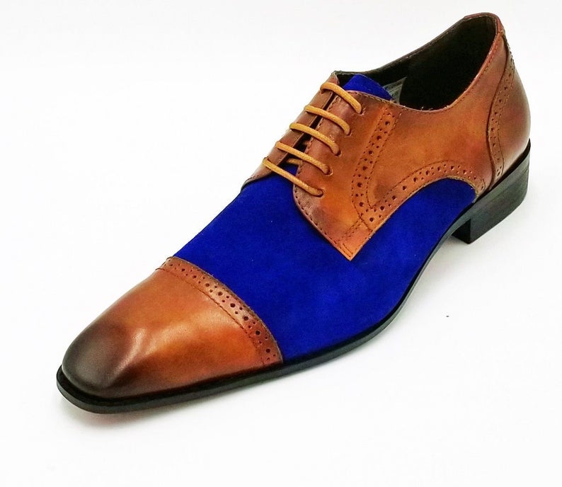 Men's Two Tone Brown And Blue Shoes - Men's Dress Shoes - Dress Shoes - Balmoral Shoes - Lace up Shoes