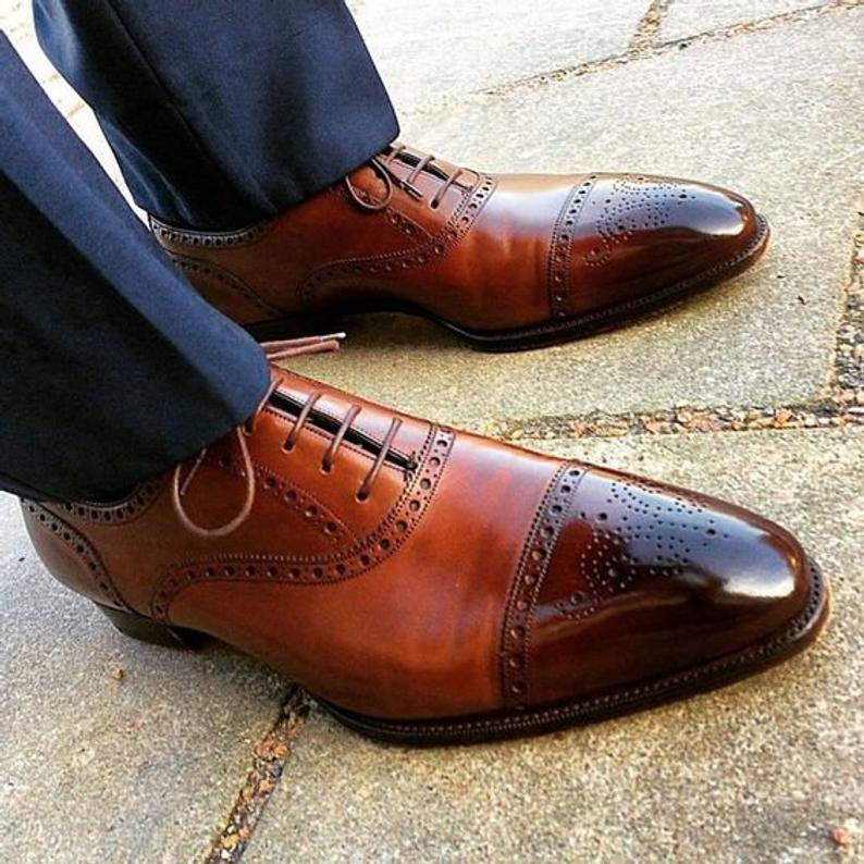 Men's Brown Color Black Shade Oxford Shoes - Formal Men's Brown Formal Shoes, Men Dress Shoes