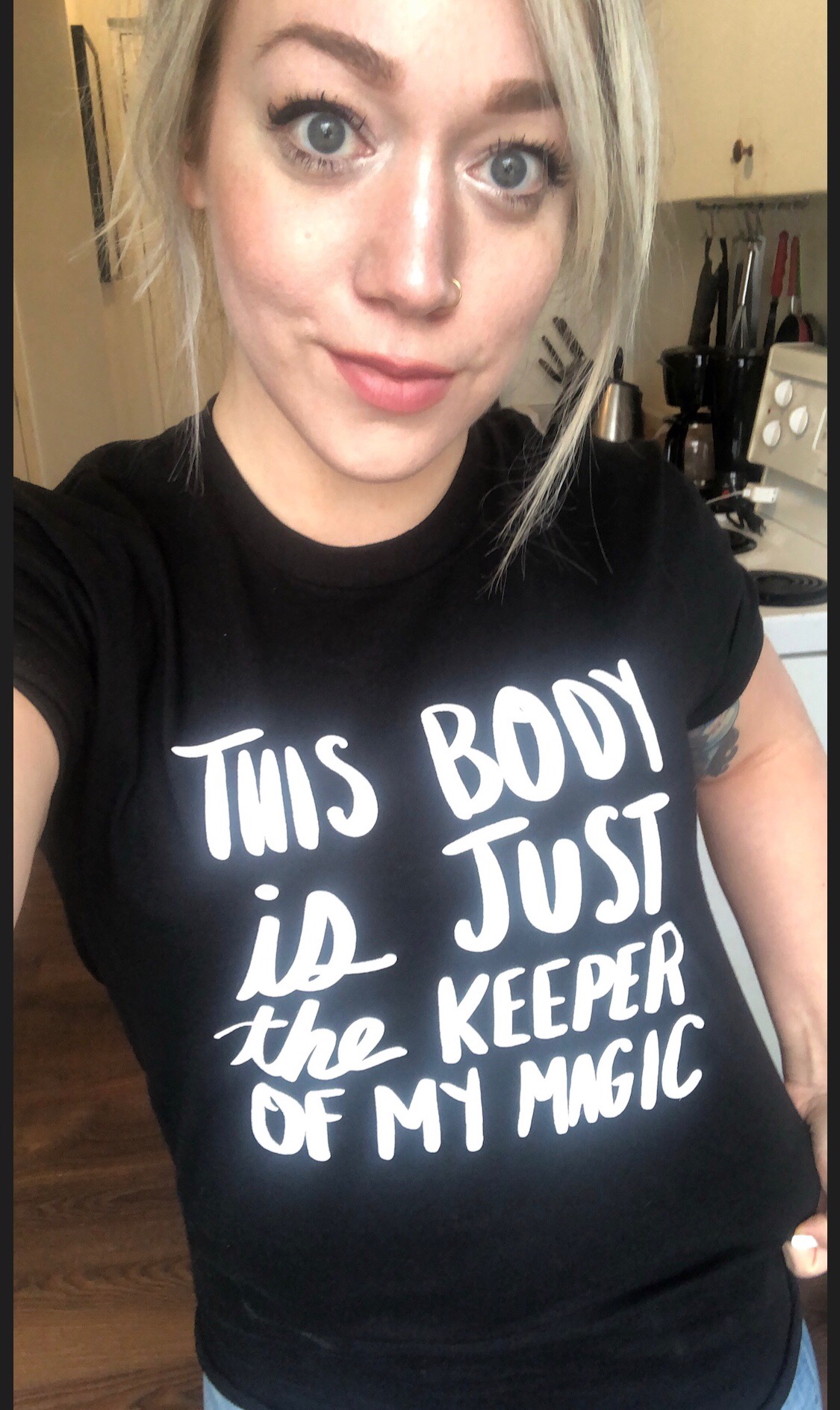 The long-awaited black version of Body Magic is here! Shirt runs large since it is unisex! I recommend sizing down a size! "This body is just the keeper of my magic" This is a reminder for you and a reminder for those who come in contact with you. A reminder that we are so much more than our bodies. Confused about what size or order? Email us at [email protected] ****SHIRT MEASUREMENTS IN PHOTOS!*