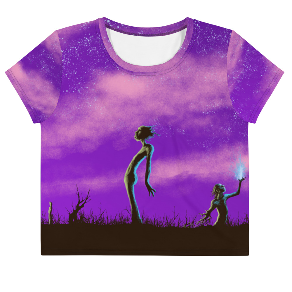 Looking for you next wardrobe favorite? Well, look no further because this crop tee is printed and sewn to fit you just right. To top that off, the original all-over design is definitely worth showing off, so don't hesitate to own one of these tees - they're meant to be adored.