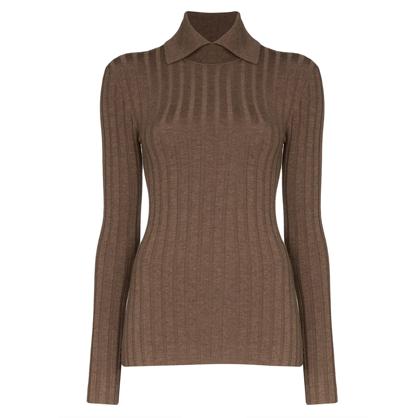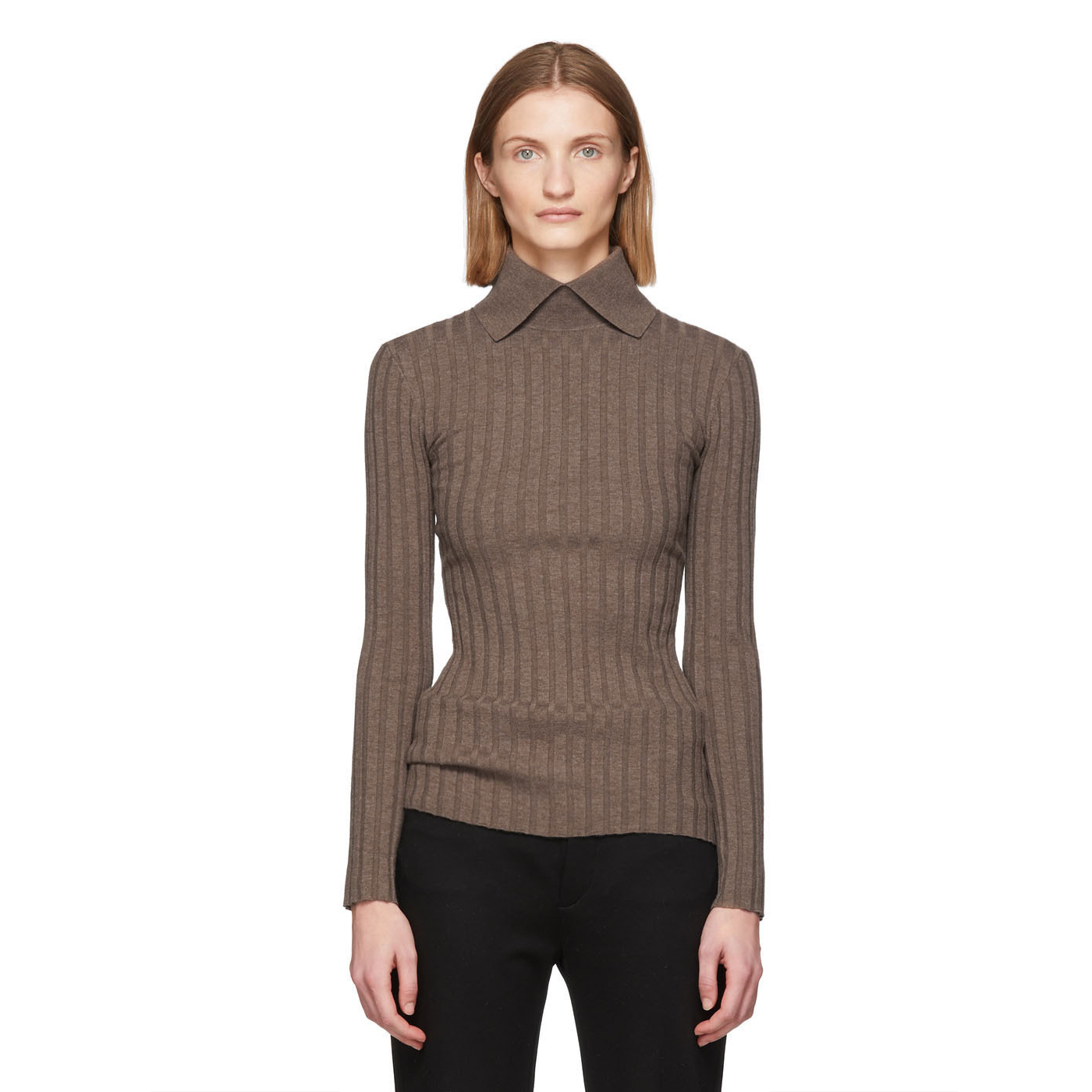 Toteme Aviles Point-collar Ribbed Wool-blend Sweater Top Jumper in Brown-1
