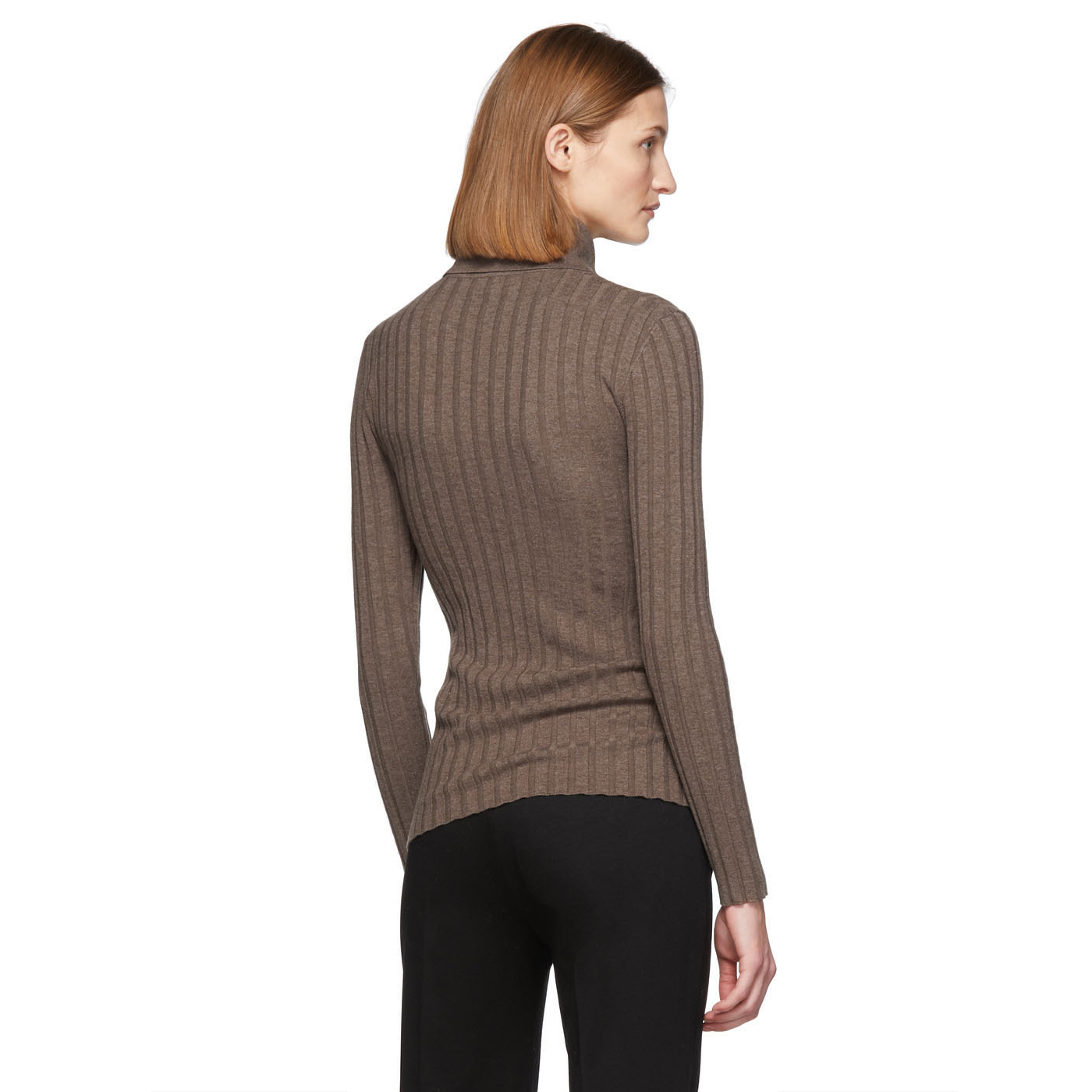 Toteme Aviles Point-collar Ribbed Wool-blend Sweater Top Jumper in Brown-3