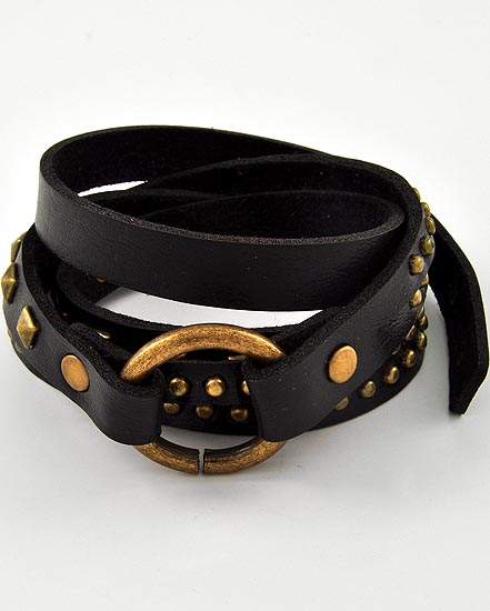 Burnished Gold Tone / Black Leatherette / Lead Compliant / Wrap Bracelet Length : 29 1/2" - 31 1 /4" Width : 1"
