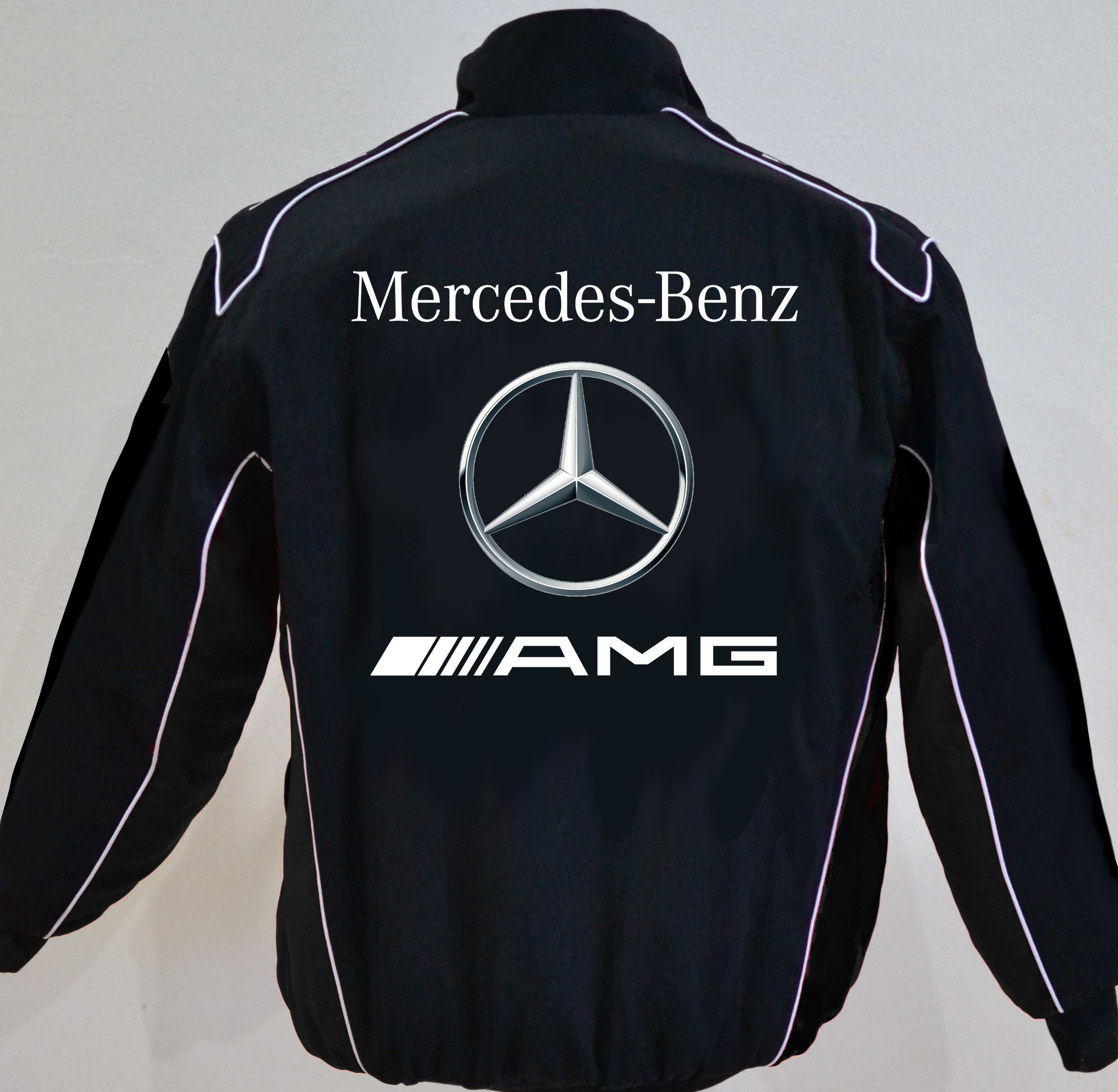 Mercedes-AMG - Jacket lined inside and quilted satin, wind repellent two hand pockets, one inside pocket cotton with viscose high quality embroidered applications Please take note of our Size-Chart !!! 3 lining variants: summer-jacket without lining spring-autumn-lining (standard-lining) strong winter-lining + $ 15.00 Company logo, club logo possible !!! Name embroider $ 5.00 Please indicate size and special-request when ordering. Your jacket will be made, it will take about 2 weeks depending on the order situation. Shippingservice: DHL with tracking-number __________________________________ innen gefüttert und Satin abgesteppt, windabweisend zwei Einschubtaschen, eine Innentasche Baumwolle mit Viskoseanteil erstklassig bestickt  Bitte beachten Sie unsere Größentabelle !!! 3 Futter-Varianten: Sommer-Jacke ohne Futter Frühjahr-Herbst-Futter (Standard-Futter) starkes Winter-Futter + 15,- $ Firmen-Logo, Club-Logo möglich !!! Name aufsticken 5,- $ Bitte geben Sie Größe und Sonderwünsche bei der Bestellung an. Ihre Jacke wird angefertigt, Dauer ca. 2 Wochen je nach Auftragslage. Versandservice: DHL mit Sendungsnummer