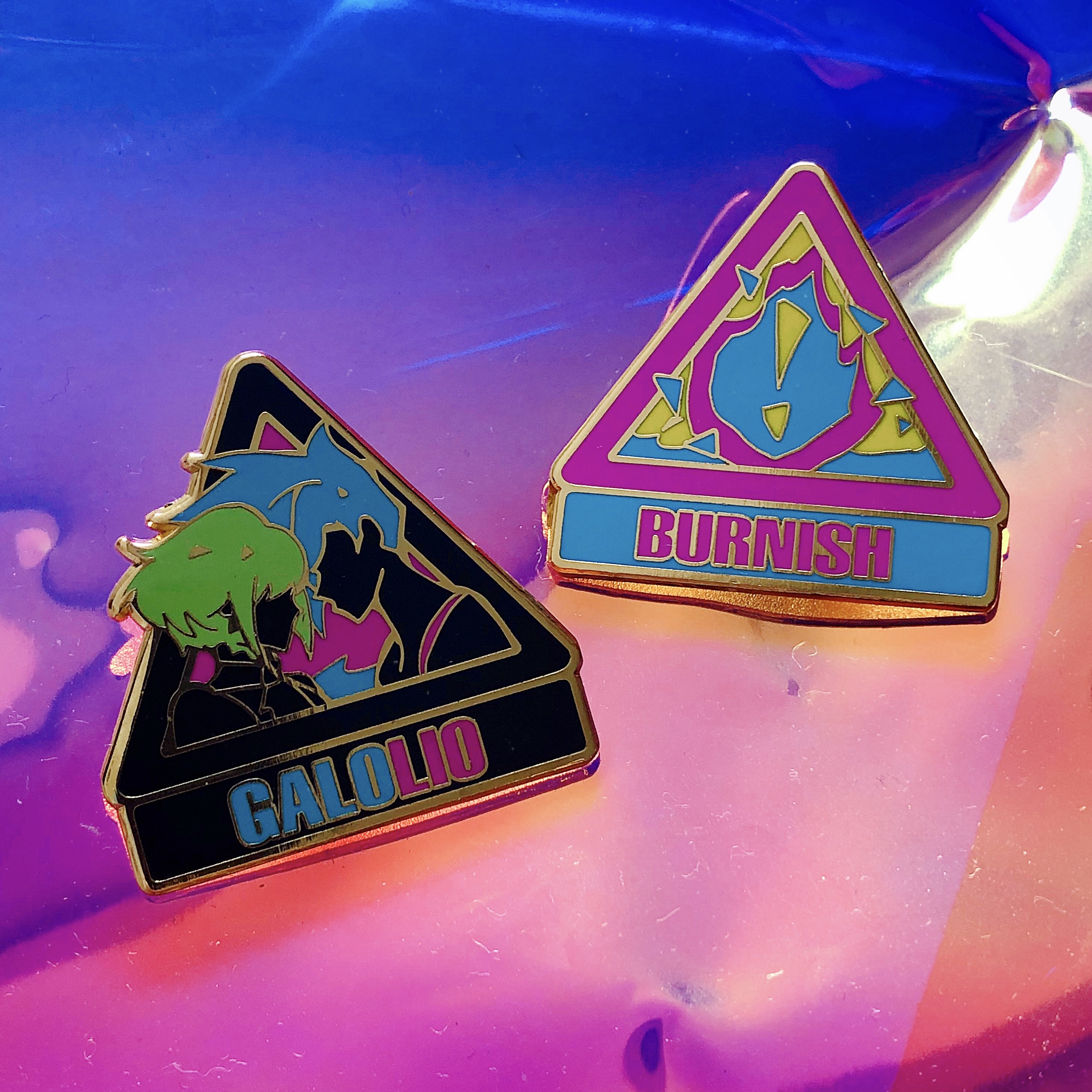 Promare enamel pin designs. based on the concept of warning sign! 45mm maximum width. - Tracking is not included in the shipping-