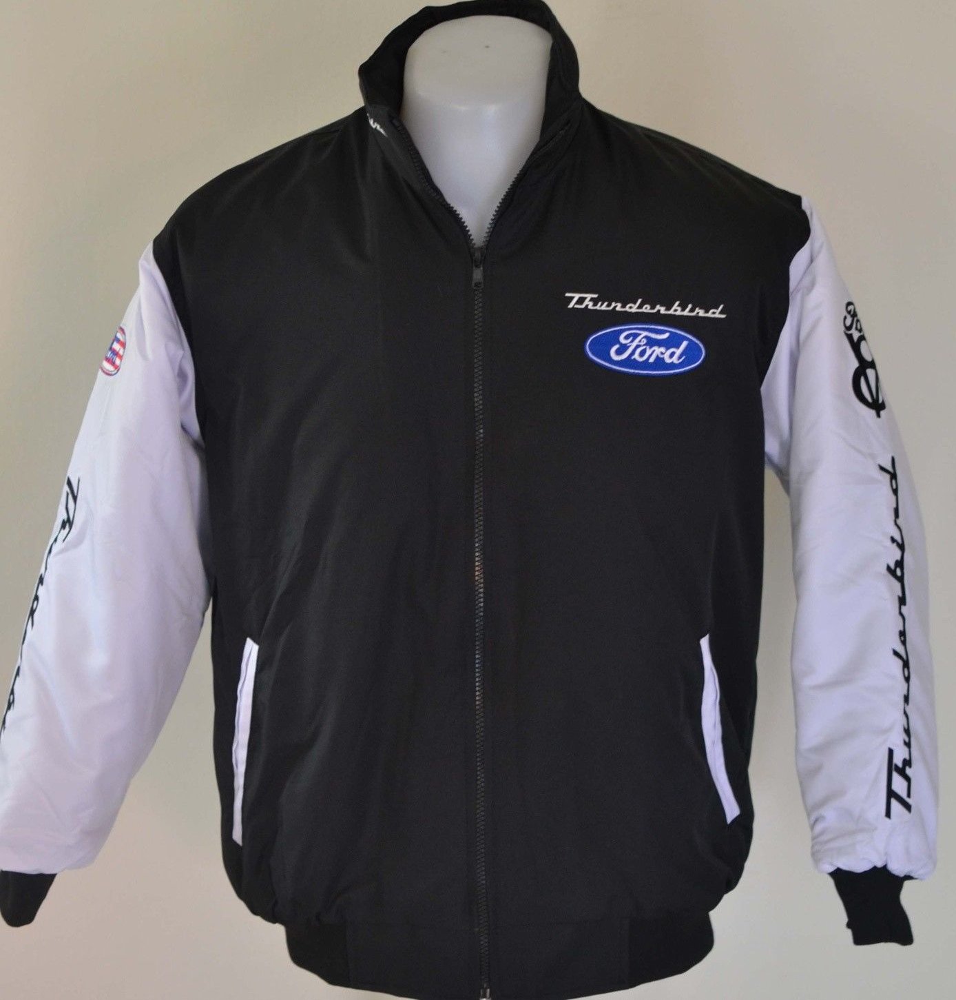 Ford Thunderbird - Jacket lined inside and quilted satin, wind repellent two hand pockets, one inside pocket cotton with viscose high quality embroidered applications Please take note of our Size-Chart !!! 3 lining variants: summer-jacket without lining spring-autumn-lining (standard-lining) strong winter-lining + $ 15.00 Company logo, club logo possible !!! Name embroider $ 5.00 Please indicate size and special-request when ordering. Your jacket will be made, it will take about 2 weeks depending on the order situation. Shippingservice: DHL with tracking-number __________________________________ innen gefüttert und Satin abgesteppt, windabweisend zwei Einschubtaschen, eine Innentasche Baumwolle mit Viskoseanteil erstklassig bestickt  Bitte beachten Sie unsere Größentabelle !!! 3 Futter-Varianten: Sommer-Jacke ohne Futter Frühjahr-Herbst-Futter (Standard-Futter) starkes Winter-Futter + 15,- $ Firmen-Logo, Club-Logo möglich !!! Name aufsticken 5,- $ Bitte geben Sie Größe und Sonderwünsche bei der Bestellung an. Ihre Jacke wird angefertigt, Dauer ca. 2 Wochen je nach Auftragslage. Versandservice: DHL mit Sendungsnummer