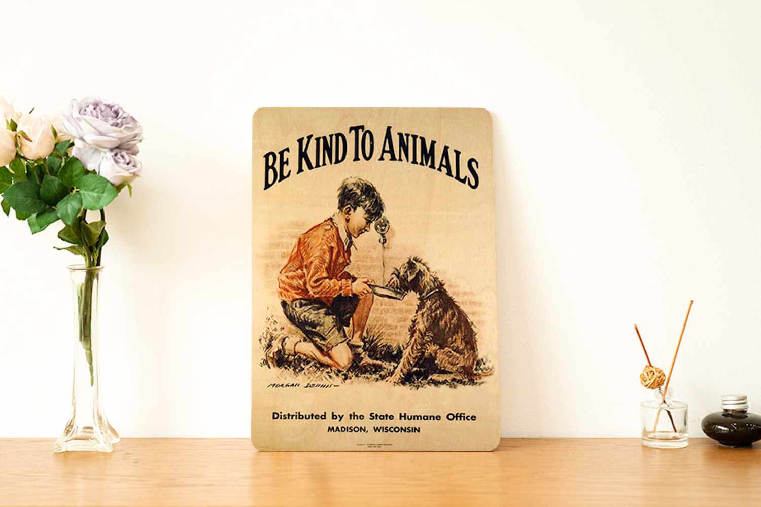 Handcrafted Eco-Friendly Wooden Vintage Poster, BE KIND TO ANIMAL1, ANIMAL Poster-2