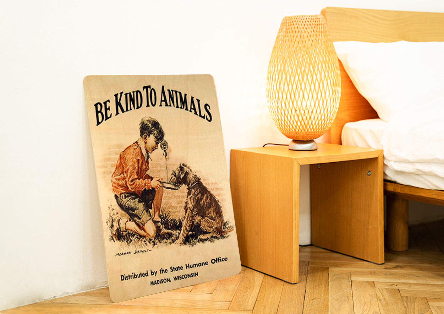 Handcrafted Eco-Friendly Wooden Vintage Poster, BE KIND TO ANIMAL1, ANIMAL Poster-3