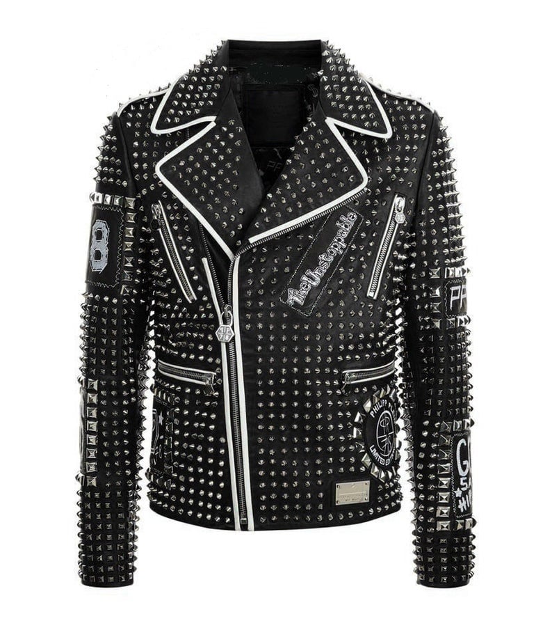 Handmade Men Fashion Studded Punk Style Leather Jacket