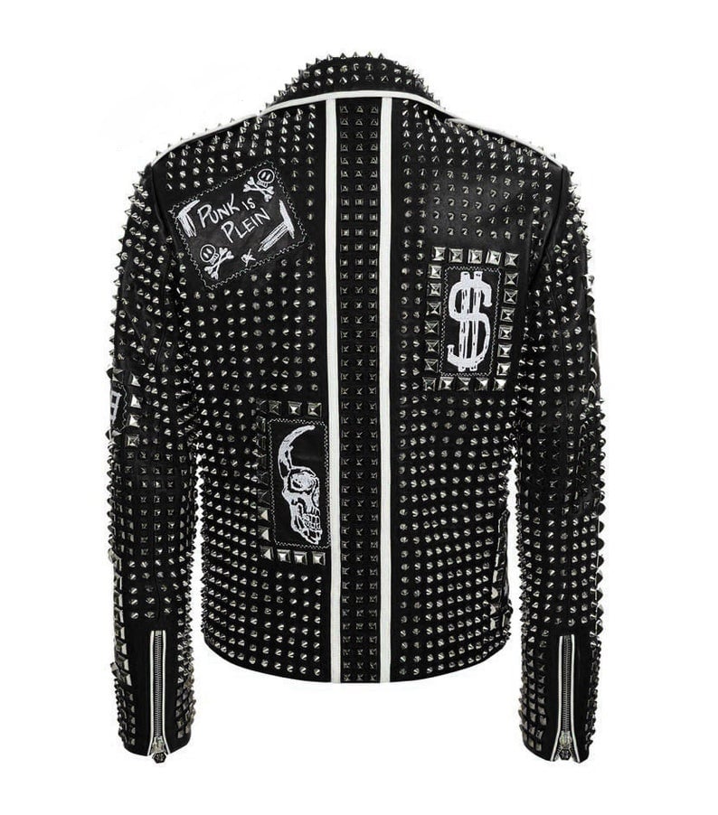 Handmade Men Fashion Studded Punk Style Leather Jacket-3
