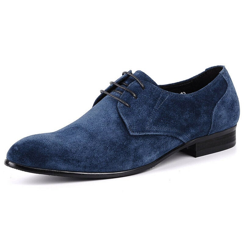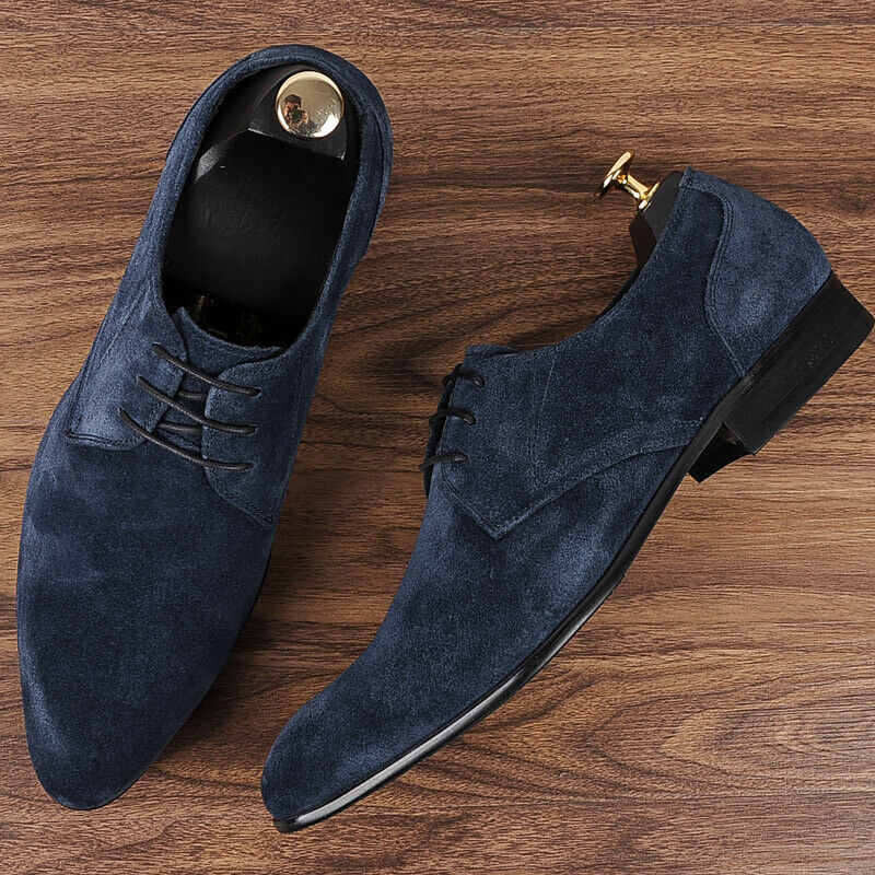 Handmade Blue Suede Leather Derby Lace Up Formal Dress Shoes For Men