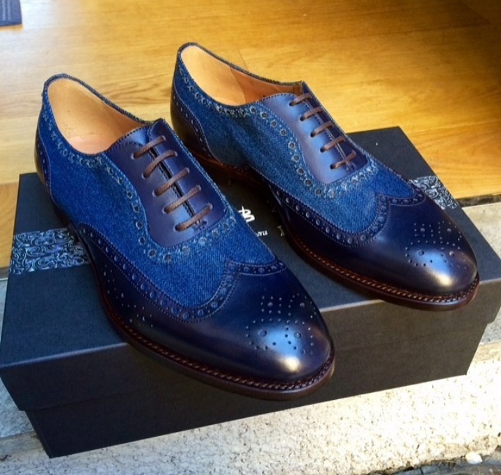 Oxford Shoes Men's Blue Color Full Brogue Suede Leather Premium Quality Handmade