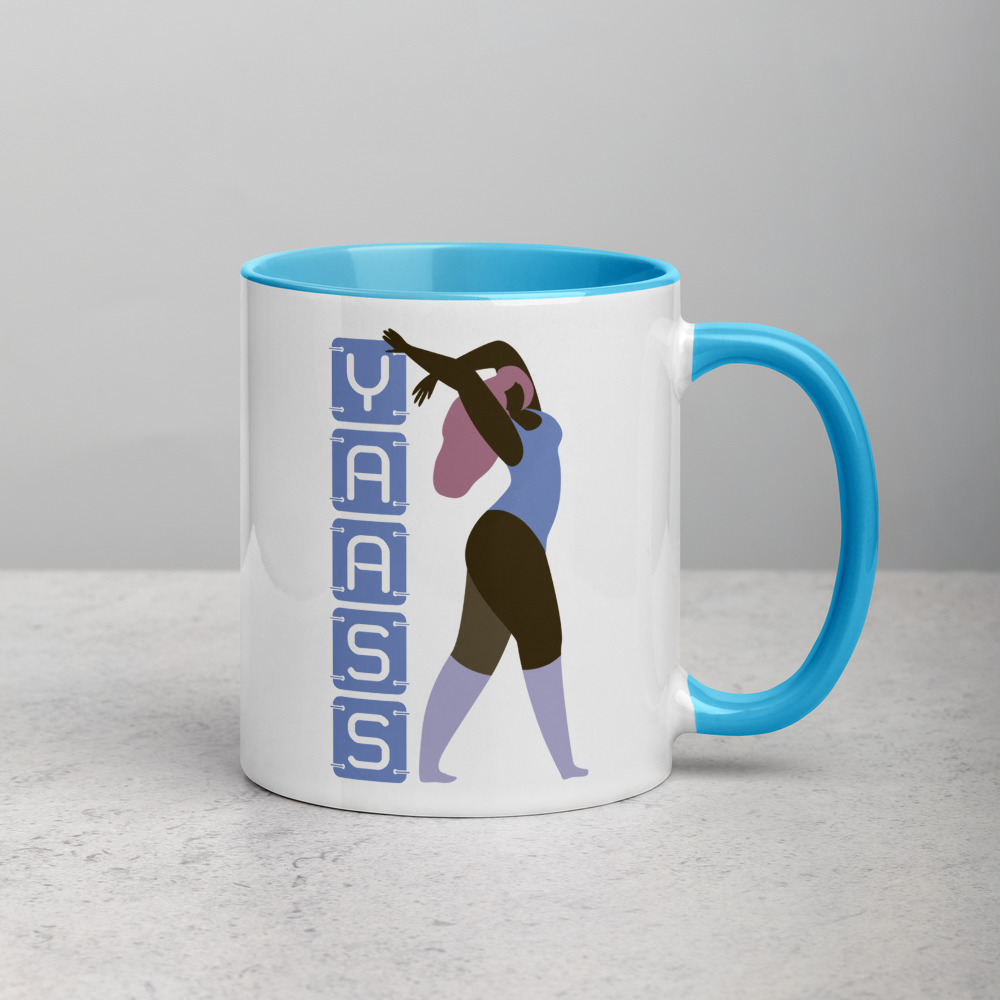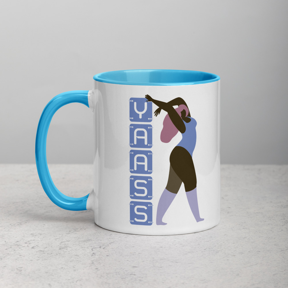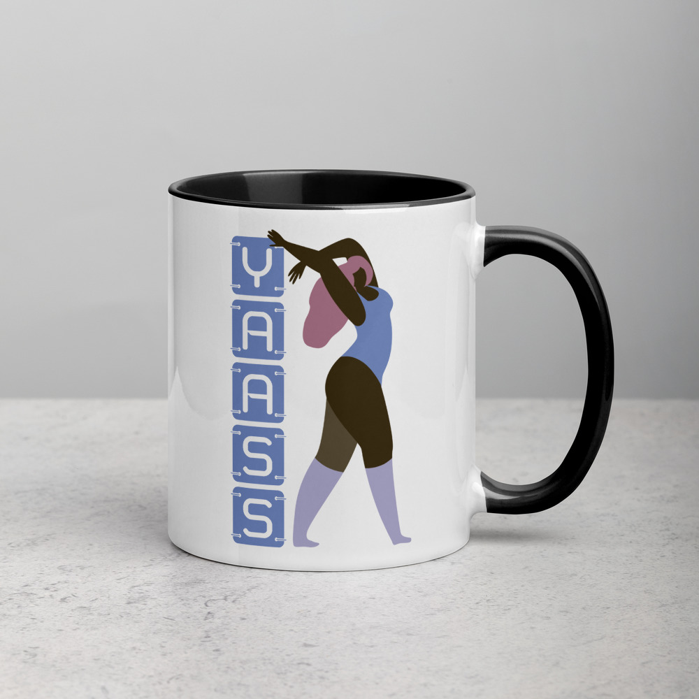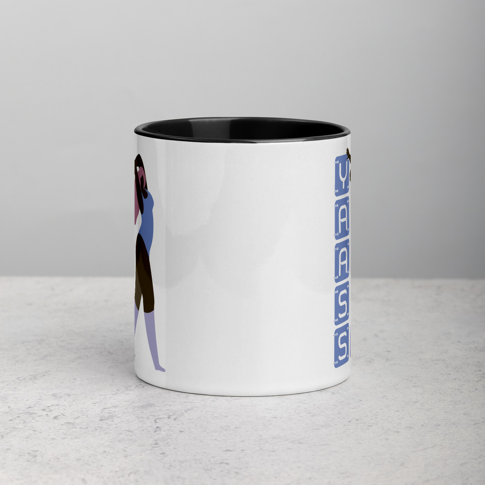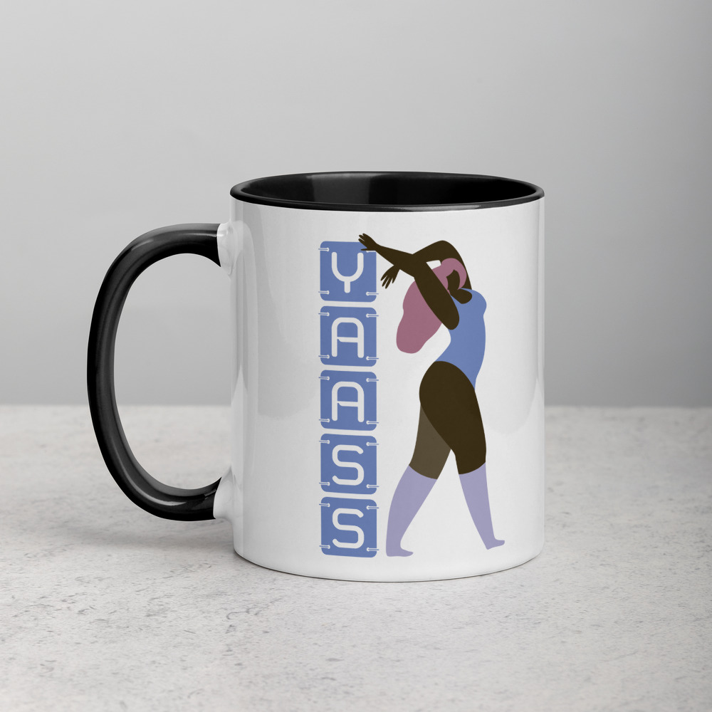 YAASS (African American Woman) Mug with Color Inside by McCalla Coulture: Femininities Collection. Add a splash of color to your morning coffee or tea ritual! These ceramic mugs not only have a beautiful design on them, but also a colorful rim, handle, and inside, so the mug is bound to spice up your mug rack. • Ceramic • Height: 3.85" (9.8 cm) • Diameter: 3.35" (8.5 cm) • White print area • Color rim, inside, and handle • Dishwasher and microwave safe