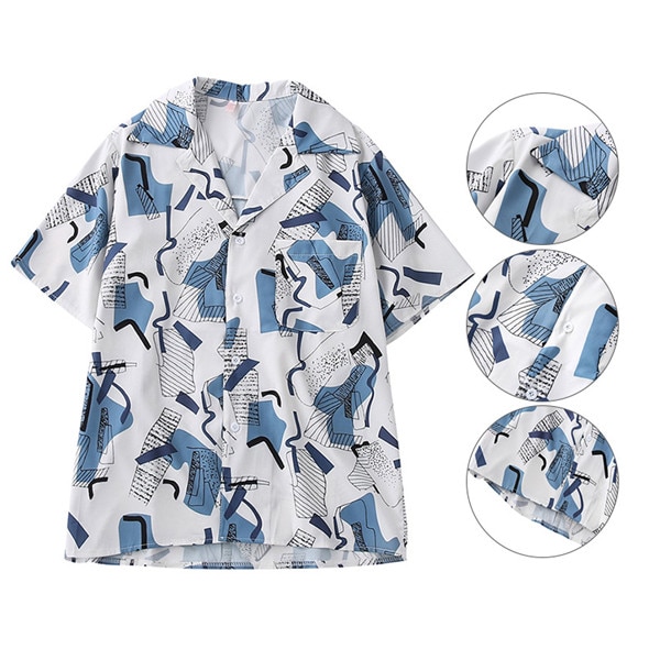 Retro Summer Chiffon Print Short Sleeve V-neck Single Buckle Casual blouse-3