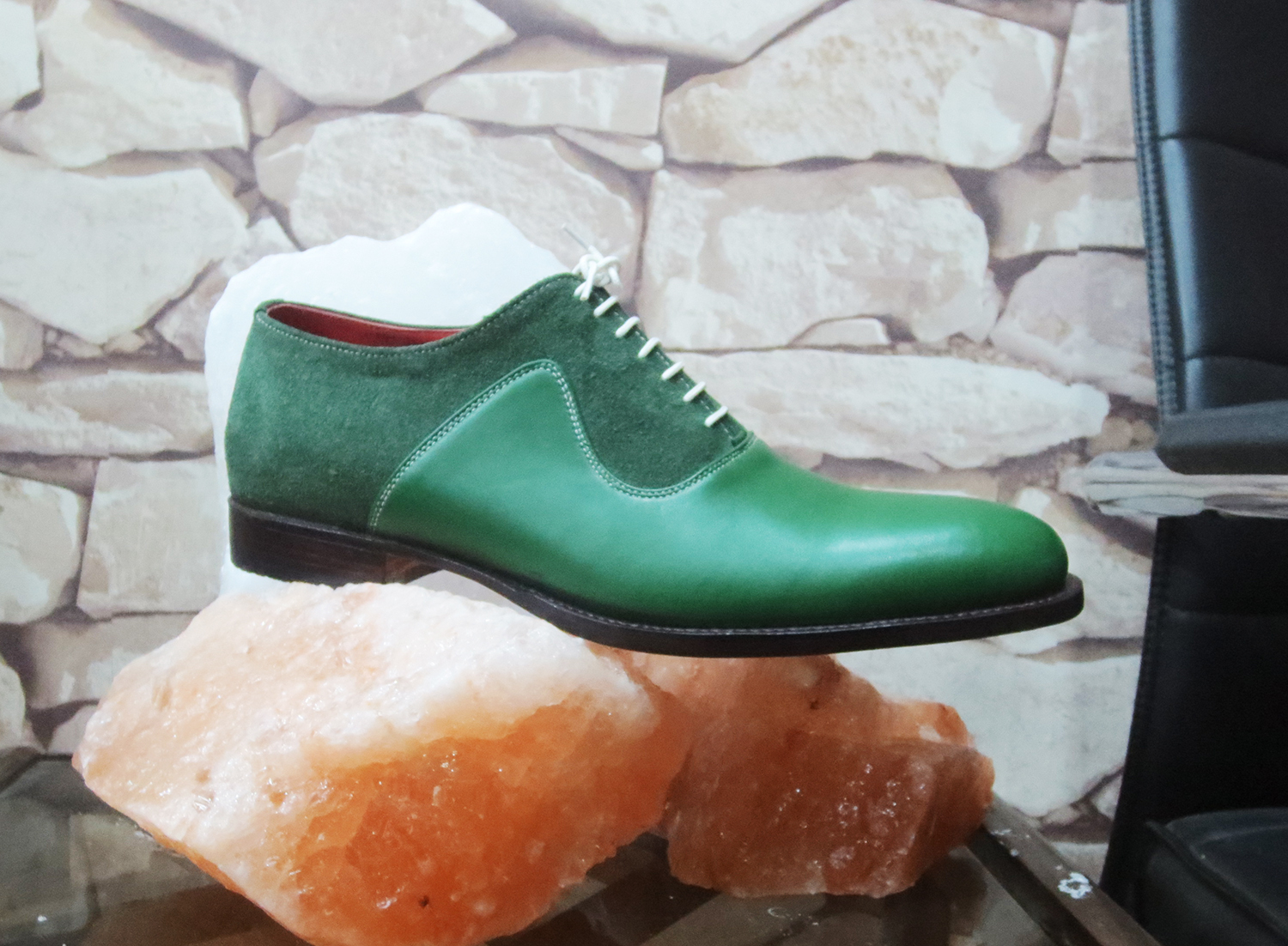 Handmade Green Color lace up leather & Suede Dress Formal Derby Shoes For Men's