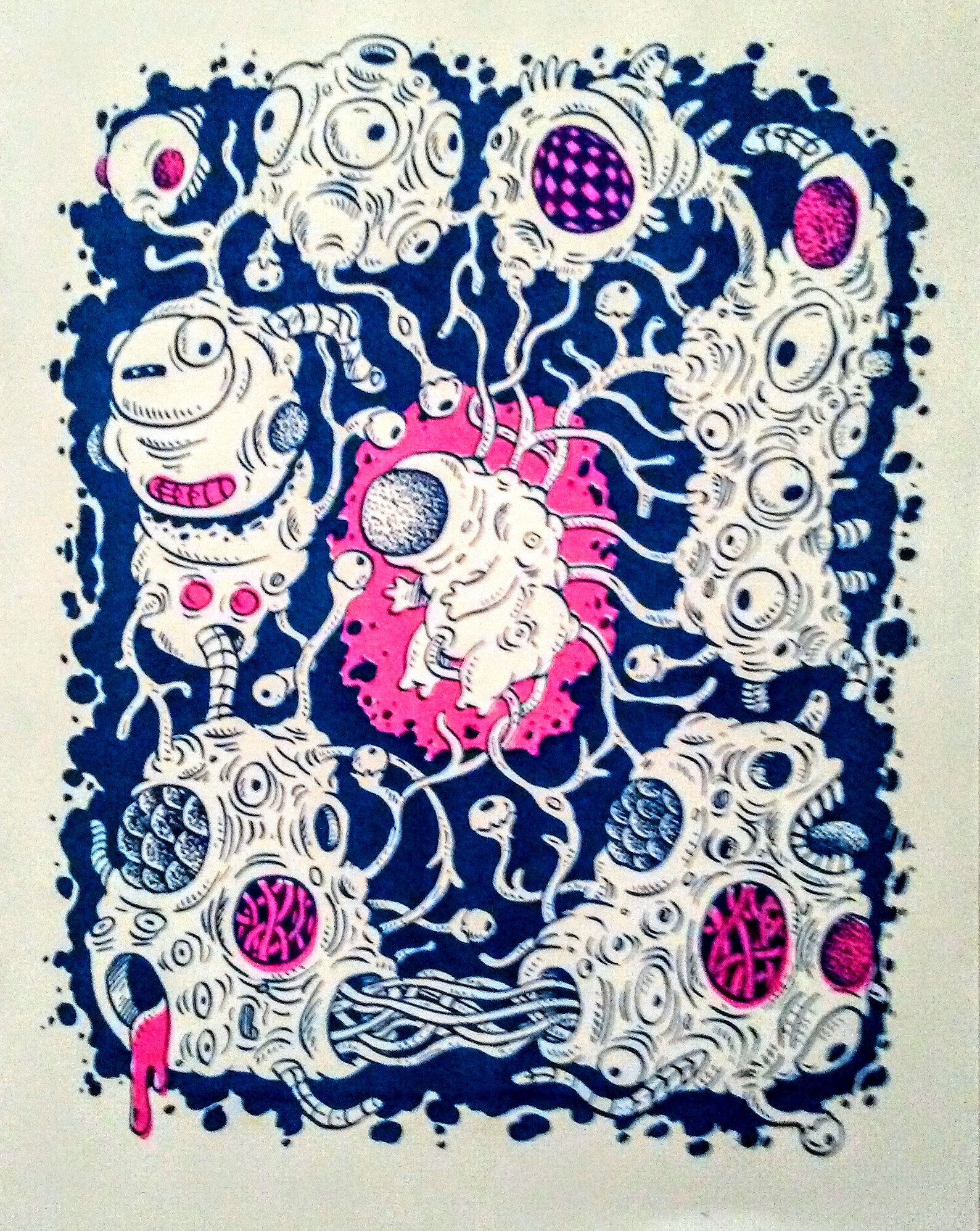 You will receive 1 randomly chosen 1-3 color Risograph prints. These are all limited run. Each one is hand printed, and signed.by the artist.