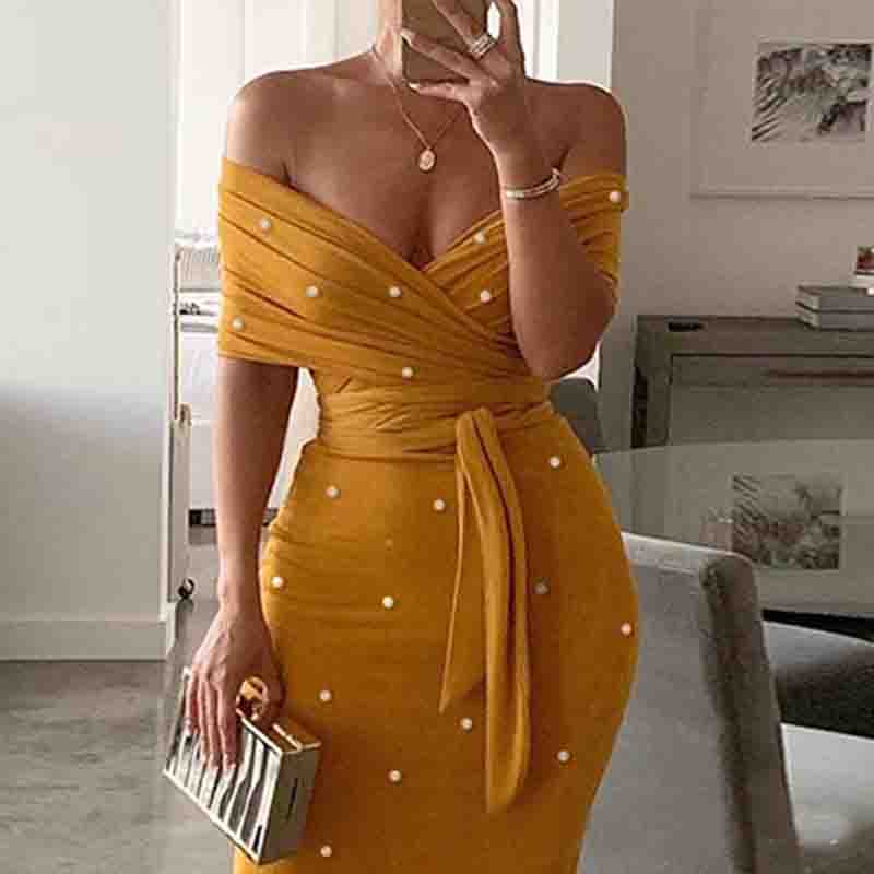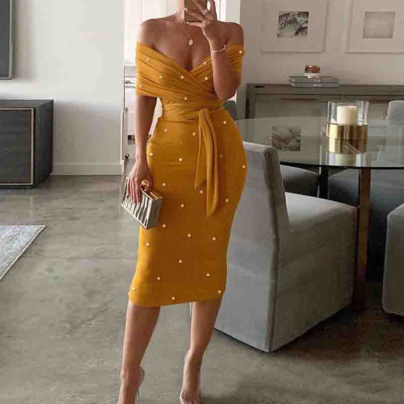Gender: Women Item Type: Dress Material: Polyester Color: Pink, Yellow Size: S, M, L, XL