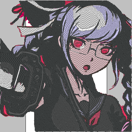 Custom video game embroidery design and pattern features the character Peko Pekoyama from the video game and anime series Danganronpa.