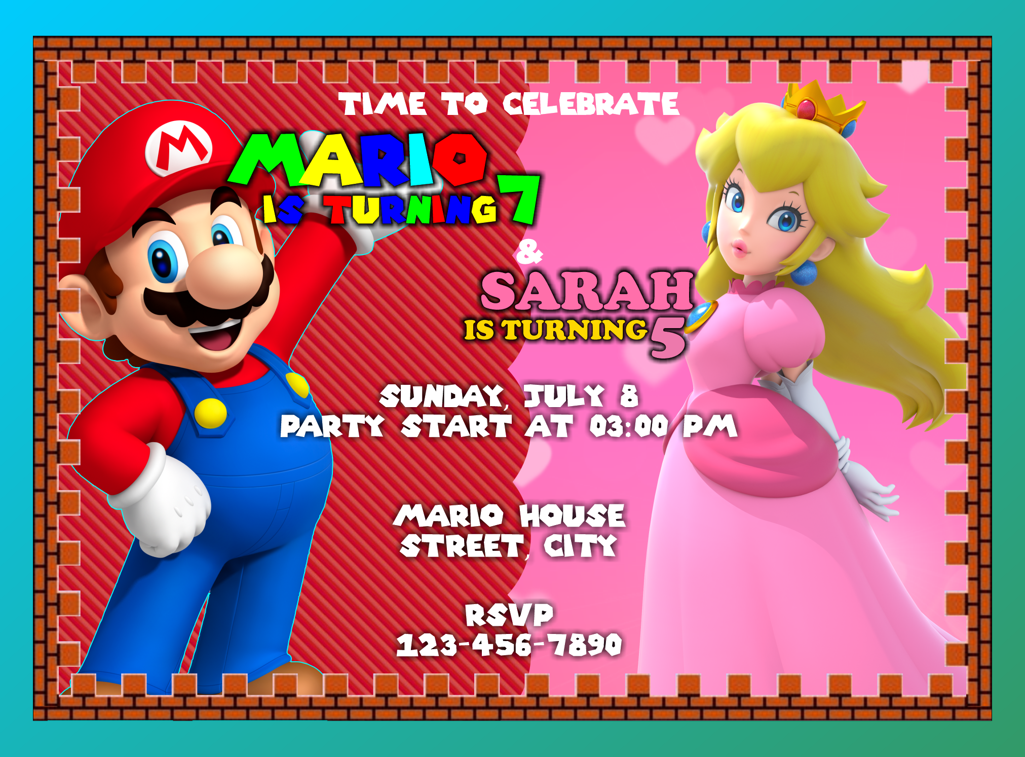 Mario Bros Princess Peach birthday invitation, Mario Bros party invitation, Mario Bros digital invitation, Mario Bros