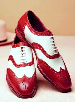Two Tone Oxford Red White Brogue Wing Tip Customized Real Leather Men's Shoes