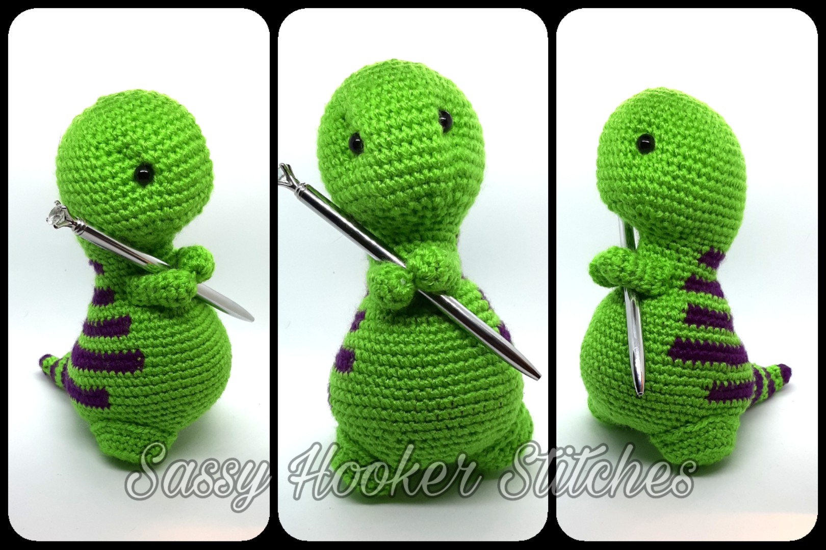 Let this adorable dino hold on to your pen for you! This listing is for one (1) dinosaur in colors shown unless otherwise indicated in notes to seller Each one is handmade using acrylic yarn, polyester fiberfill and plastic safety eyes. This dino measures approx 8" tall These do contain small parts that could create a choking hazard so please always use adult supervision with small children. - Things To Know Before Buying ☕ Each item in my shop is handmade, which may result in your item being slightly different than what is pictured. ☕ While I try to capture the colors accurately, what you receive could vary from those on your screen due to the nature of different monitors and/or mobile device settings. ☕ Please check my official Facebook page for the current shipping/ processing times. All items are handmade to order, so processing times vary, depending on the workload, especially if it’s during a sale.
