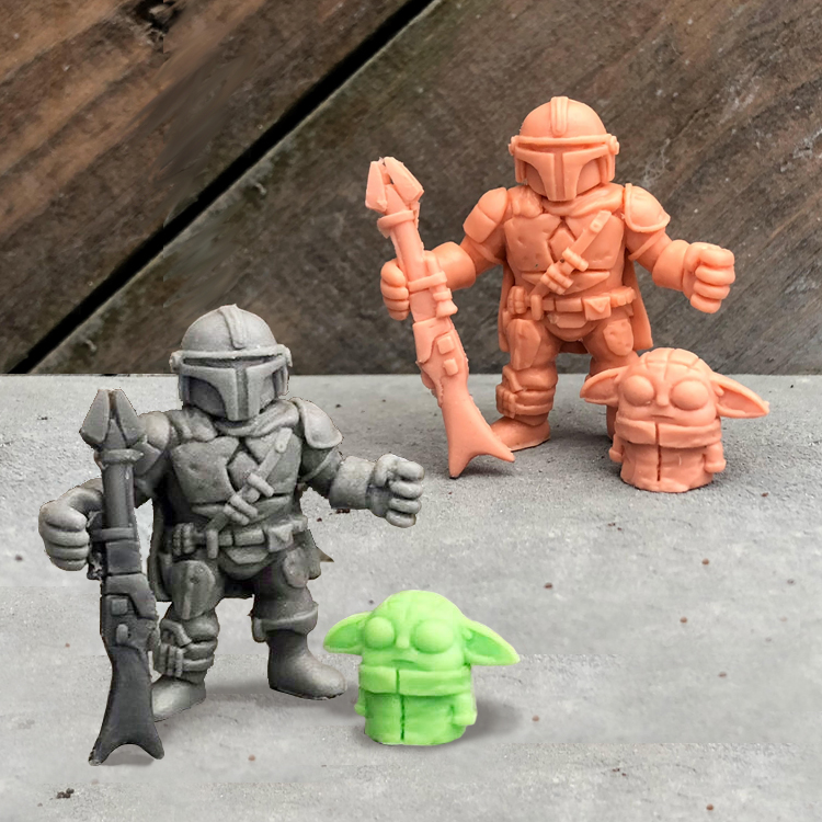 MUSCLE sized mini figure with blaster and mini child - Default flesh - Sold out - Colored set - Sold out - All grey set Sculpted by @elrojo