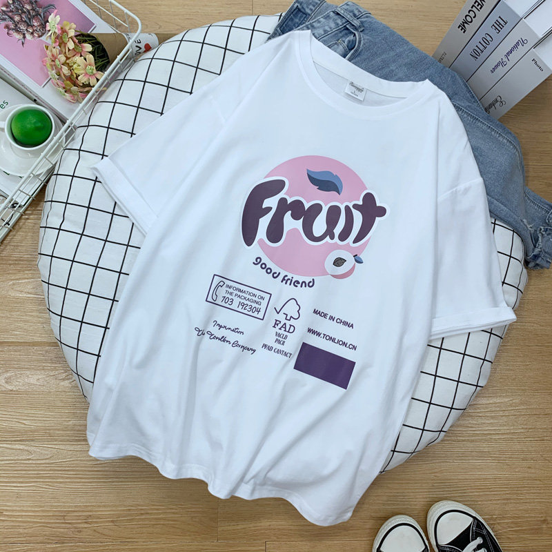 95% cotton Chic Summer New Personality Korean Style Fruit women t-shirts short white Plus Size kawaii harajukuTops Tees