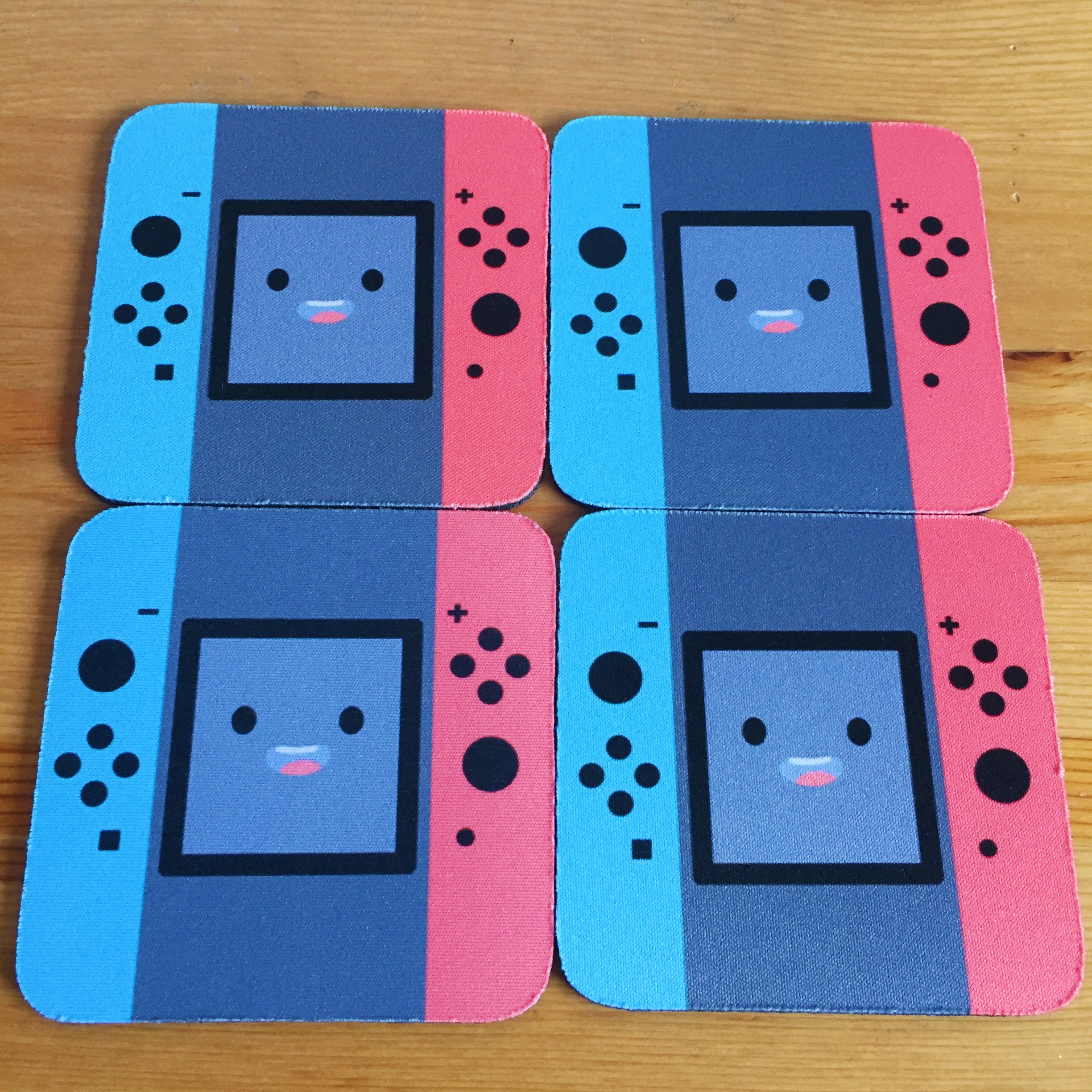 BMO from Adventure Time is cosplaying as a Switch ;) If you want to Mix & Match, please Copy & Paste product name in not section in checkout so I know which coasters you want! Please note: Differences in color shades may occur due to camera, computer monitor, or any device viewing. The art will not discolor or fade Durable heat-resistant polyester fabric top Black neoprene rubber non-slip backing 3.5" in diameter, 1/8"± thick Dishwasher/machine washable