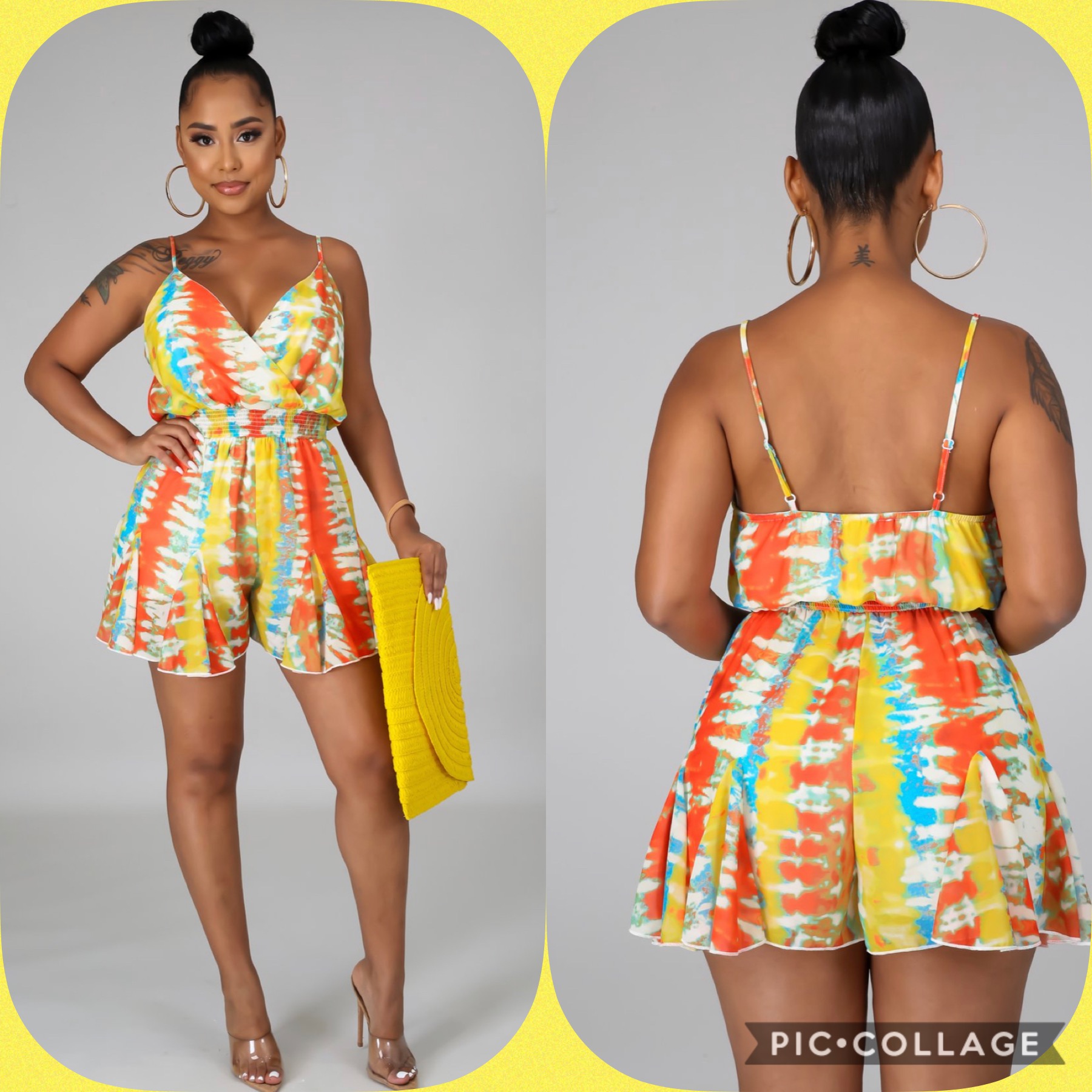 Non stretch romper Stretch waist Adjustable straps Surplice neck Sleeveless