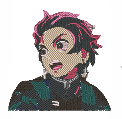 This custom anime embroidery design and project features the character Tanjiro Kamado from the anime series Demon Slayer.
