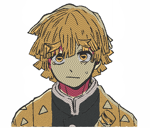 This custom anime embroidery design and pattern features the character Zenitsu Agatsuma from the anime series Demon Slayer.