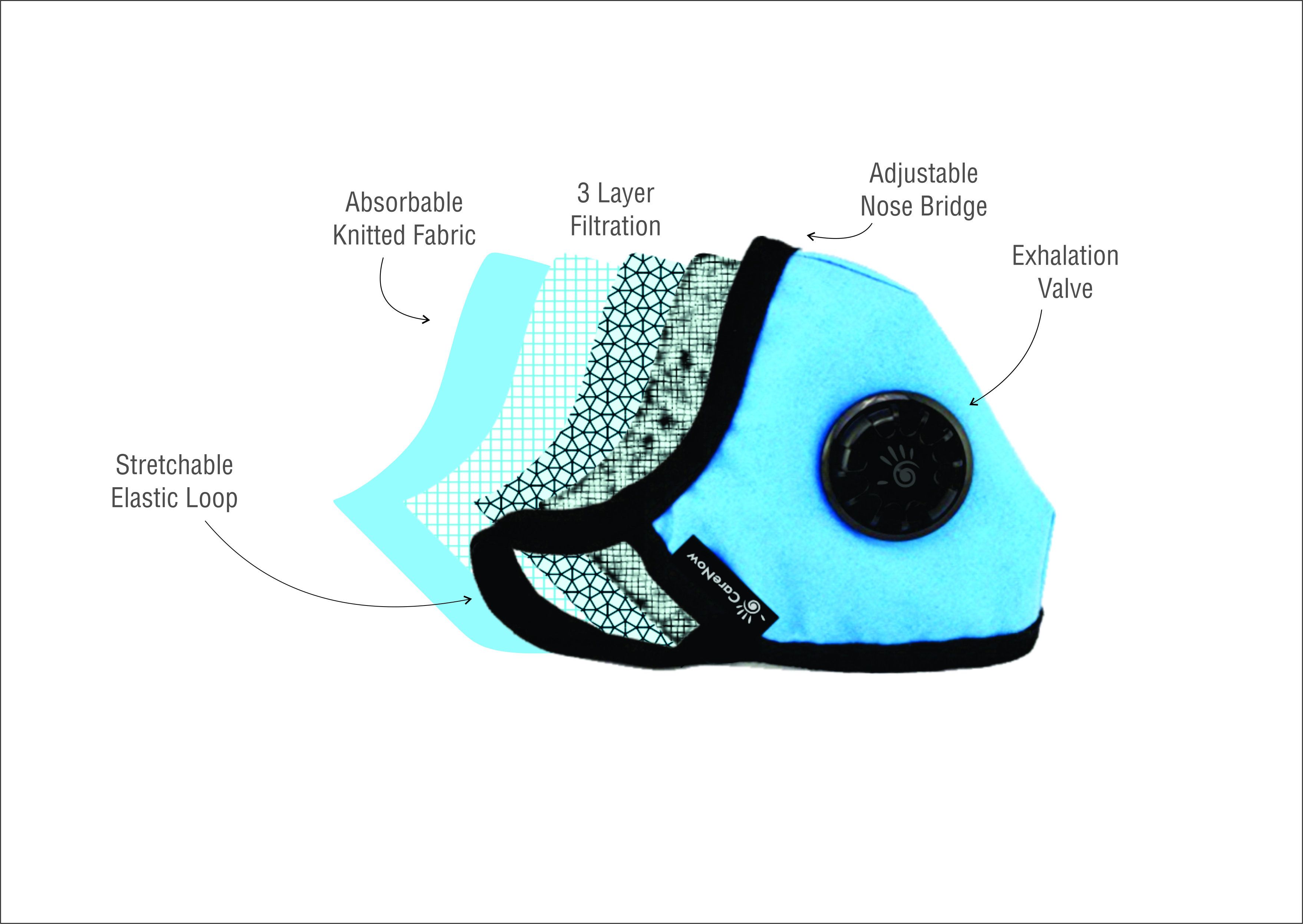 ECO AIRMASK, is a Reusable Multi-layered Filtration designed for safety, fashion and comfort. It conforms a unique blend of functionality features viz; 3 layered filtration, adjustable nose bridge, exhalation valve, stretchable elastic fabric with comfortable ear loops, odor-controlling and is available in aesthetic colors. The mask is lab-tested in India to ensure unparalleled quality and effective filtration against germs and pollutants.