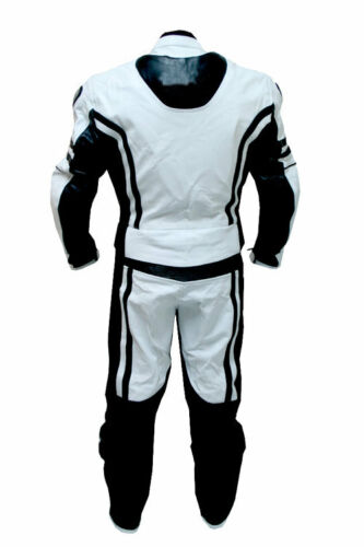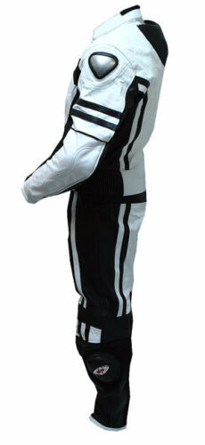 Elegant White Unique Motorcycle Racing Cowhide Leather 2 Piece Bikers Suit With Safety Pads For Men's