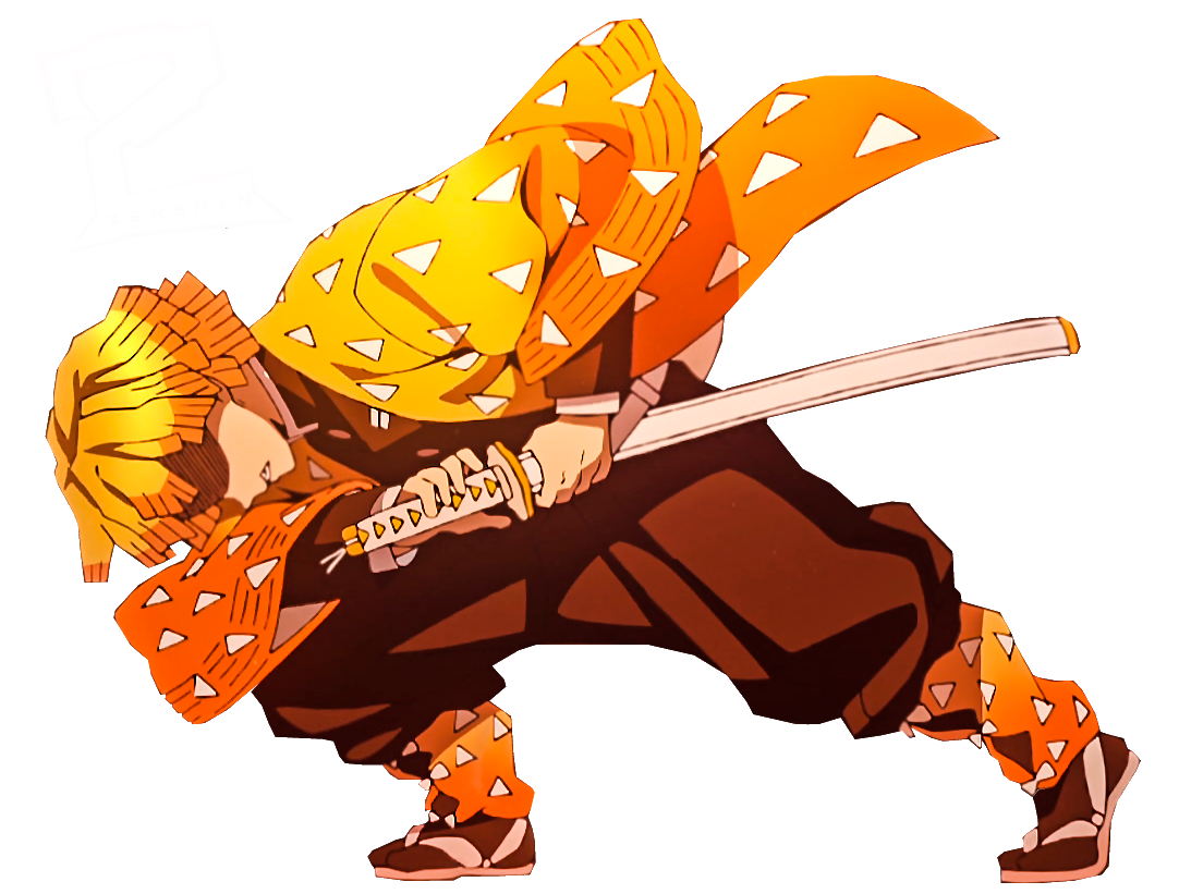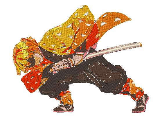 Custom anime embroidery design and pattern features the character Zenitsu from the anime series Demon Slayer in his signature stance.