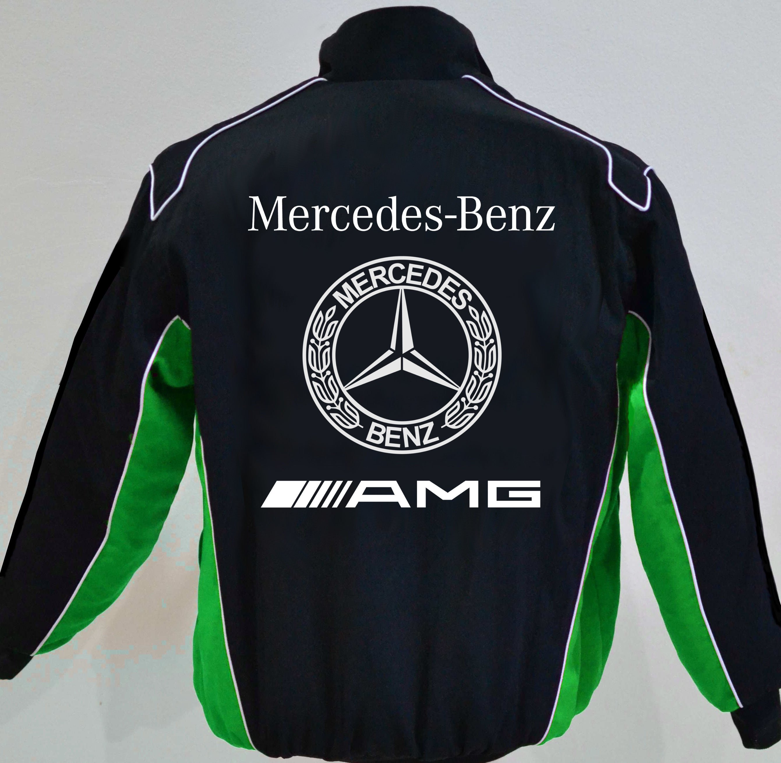 Mercedes Benz AMG - Jacket outside microfiber (35% cotton with 65% viscose) lined inside and quilted satin, wind repellent two hand pockets, one inside pocket high quality embroidered applications Please take note of our Size-Chart !!! 3 lining variants: summer-jacket without lining spring-autumn-lining (standard-lining) strong winter-lining + € 15.00 Company logo, club logo possible !!! Embroider name (chest) € 5.00 Please indicate size and special-request when ordering. Your jacket will be made, it will take about 2 weeks depending on the order situation. Shippingservice: DHL with tracking-number __________________________________ außen Mikrofaser Mischgewebe (35 % Baumwolle mit 65 % Viskose) innen gefüttert und Satin abgesteppt, windabweisend zwei Einschubtaschen, eine Innentasche erstklassig bestickt Bitte beachten Sie unsere Größentabelle !!! 3 Futter-Varianten: Sommer-Jacke ohne Futter Frühjahr-Herbst-Futter (Standardfutter) starkes Winter-Futter + 15,- € Firmen-Logo, Club-Logo möglich !!! Name aufsticken (Brust) 5,- € Bitte geben Sie Ihre Sonderwünsche bei der Bestellung an. Ihre Jacke wird angefertigt, Dauer ca. 2 Wochen je nach Auftragslage. Versandservice: DHL mit Sendungsnummer Beim internationalen Versand in die EU fallen ggf. EU-Einfuhrsteuern an.